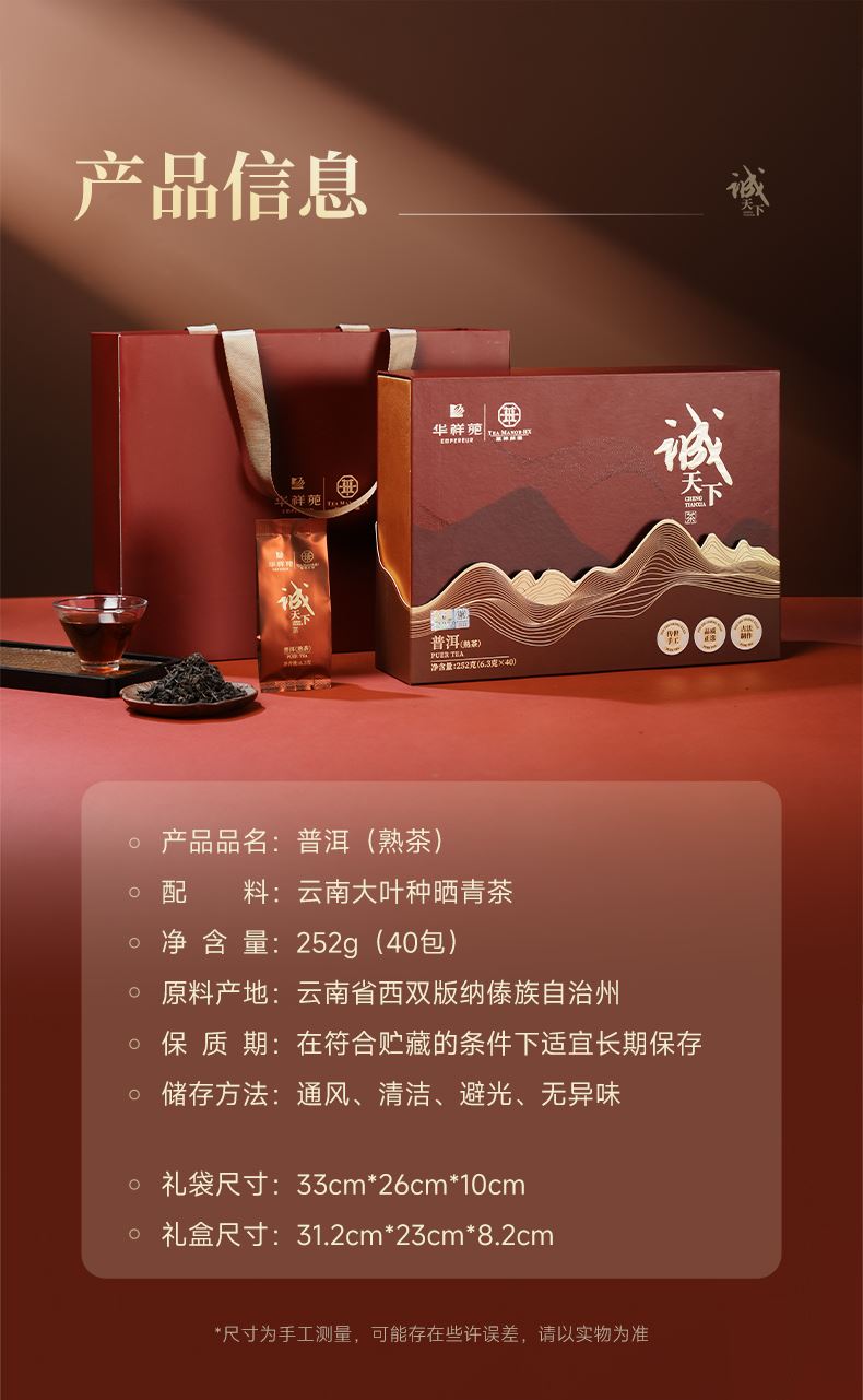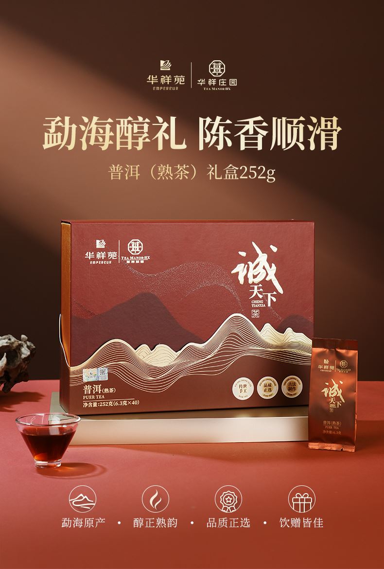 华祥苑-诚天下252g云南勐海普洱熟茶叶商务伴手礼盒套装包销