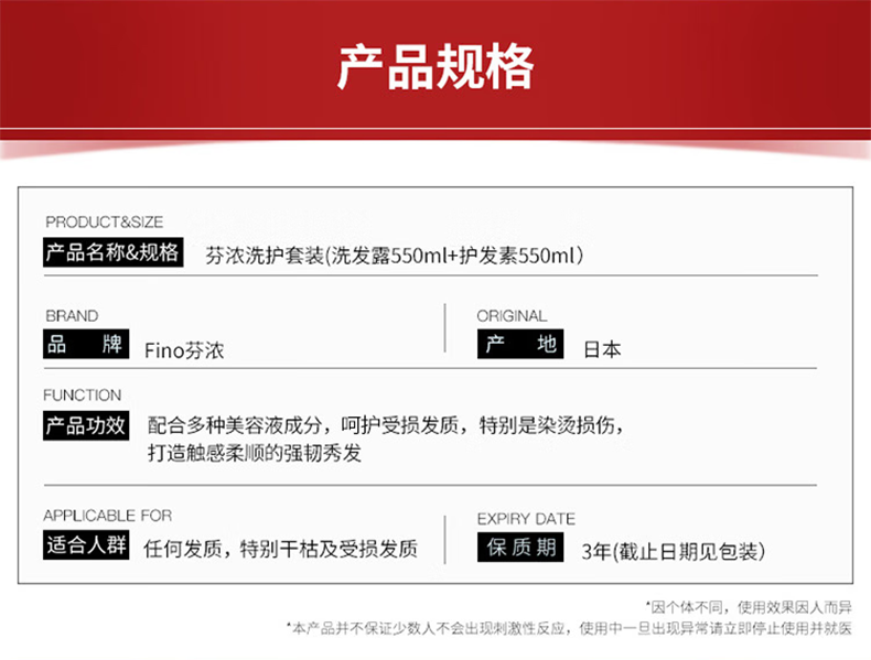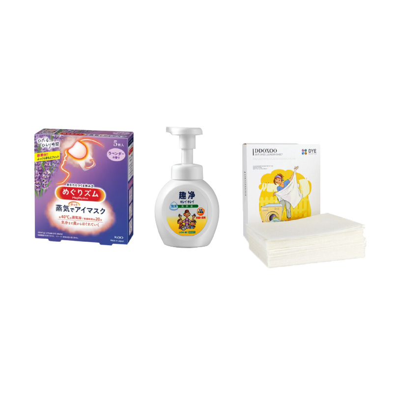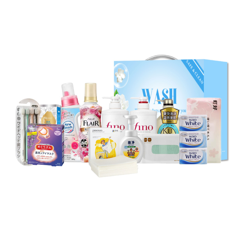 配置:(香型随机/新老包装随机) 1.芬浓透润美容液洗发露550ml*1 2.芬浓透润美容液护发素550ml*1 3.资生堂可悠然美肌沐浴露550ml*1 4.日本樱之素牙刷4支装*1 5.日本樱之素清新净白牙膏120g*1 6.日本花王进口柔软护色洗衣液690g*1 7.日本花王持久留香衣物柔顺剂520ml*1 8.日本花王(KAO)美舒律蒸汽眼罩5片装*1 9.日本花王护肤香皂130g*3 10.日本HOYO臻品长绒棉单条毛巾*1 11.日本町好抽取式洗脸巾60枚*1 12.美国进口DDOXOO防串色片40片*1 13.狮王趣净泡沫洗手液250ml*1 14.繁花系列精美彩盒*1