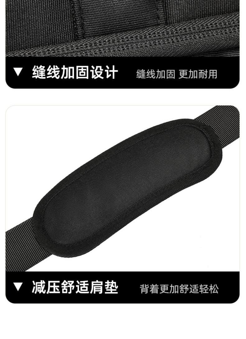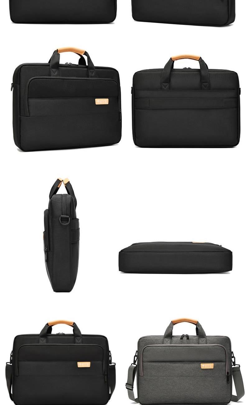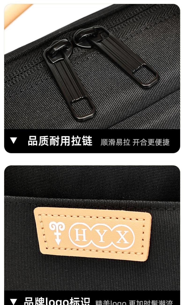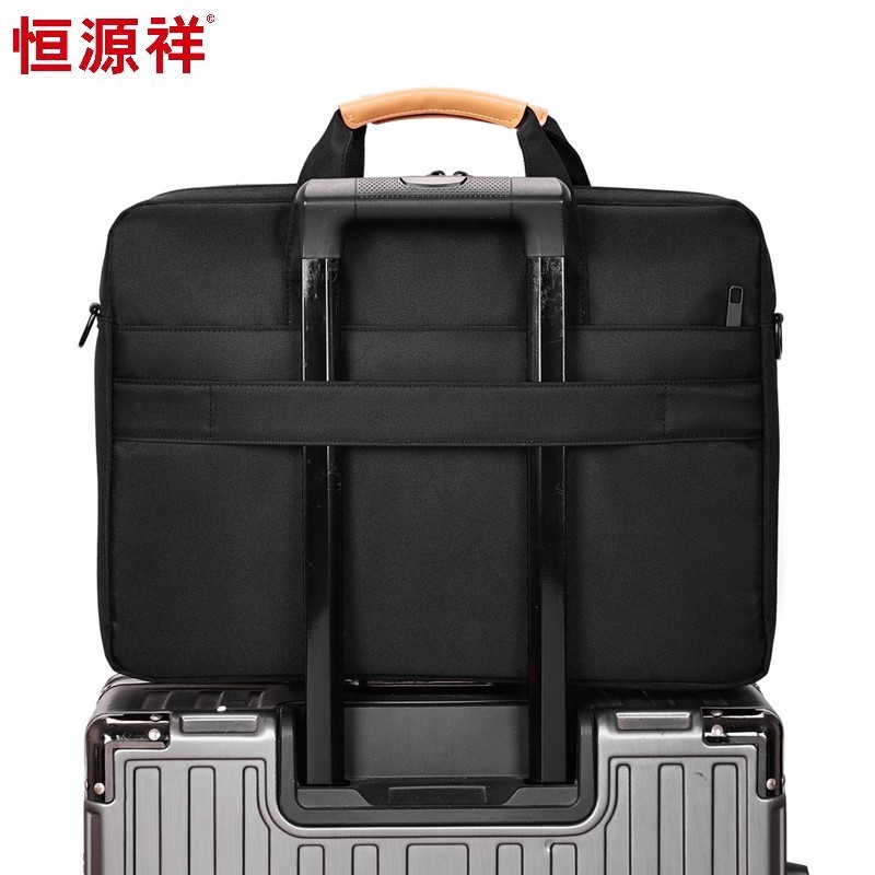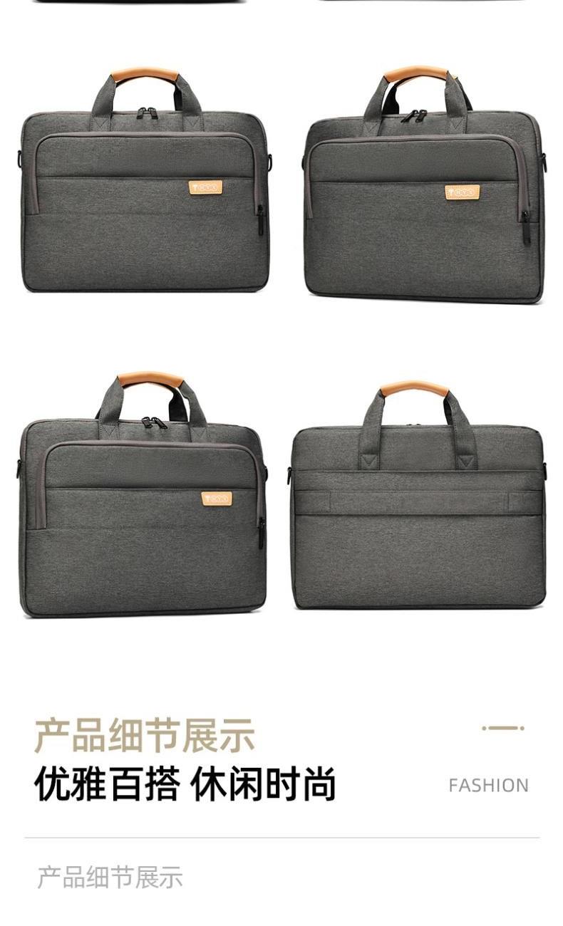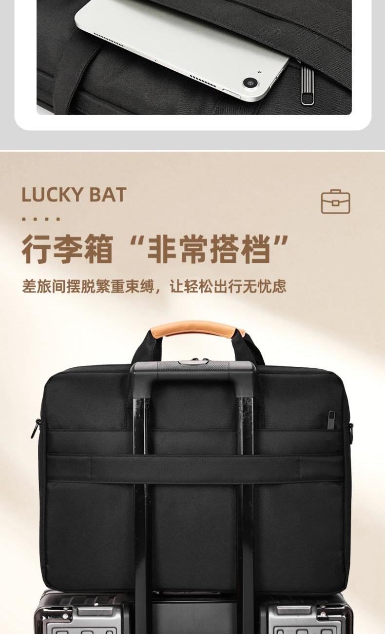 产品型号:HYX0669 产品重量:0.68kg 产品规格:42*9*32cm 产品颜色:黑色、灰色 产品卖点:采用900D涤纶,质感好,档次高; 大容量电脑公文包,内部防震抗摔独立14英寸电脑仓; 人性化拉杆织带设计,插在拉杆箱上,旅行更方便。 可拆卸单肩背背带,可提可背,双重场景切换; 前置双层收纳袋,可收纳日常零碎物品。