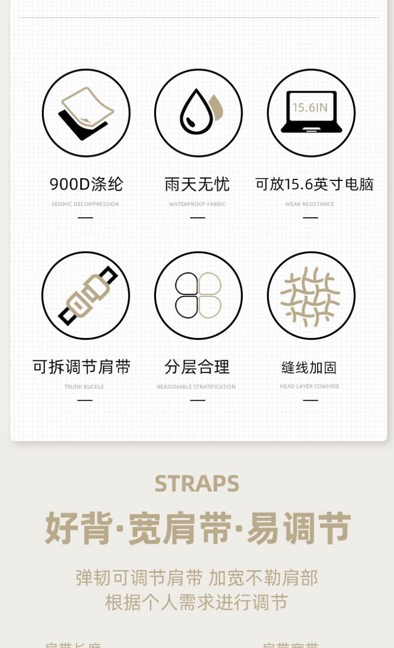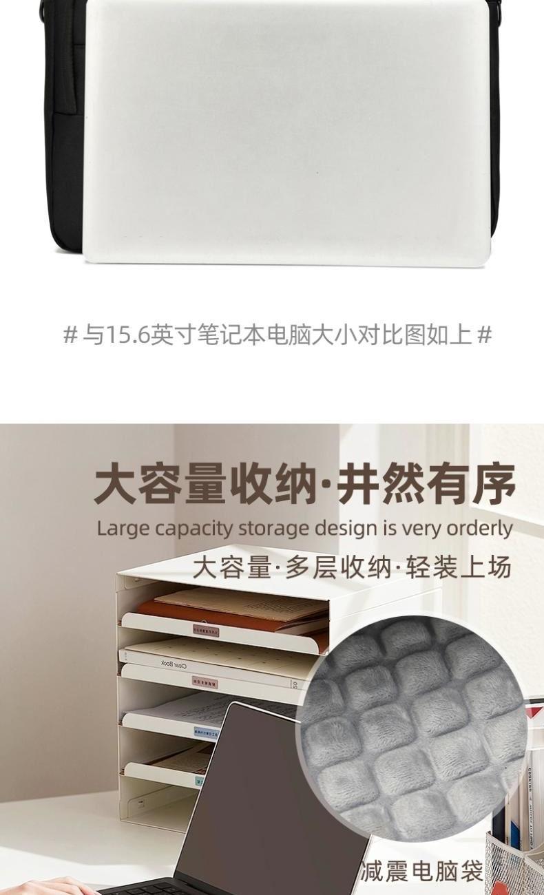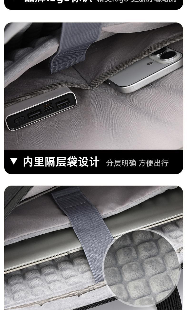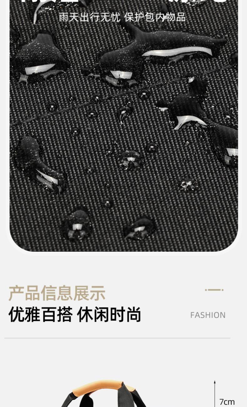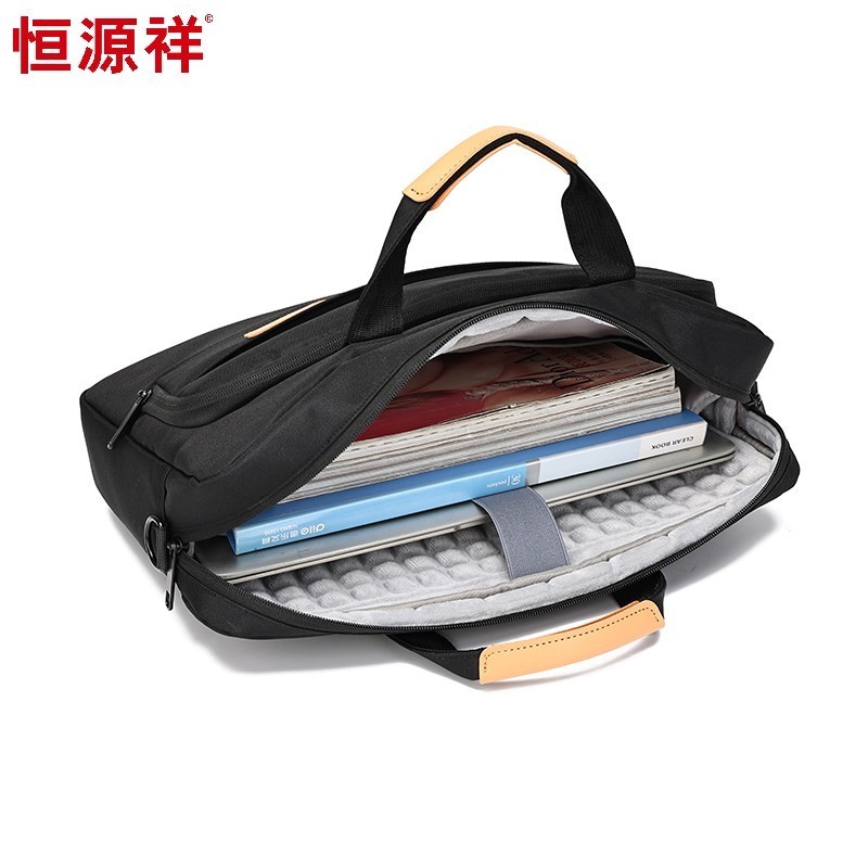 产品型号:HYX0669 产品重量:0.68kg 产品规格:42*9*32cm 产品颜色:黑色、灰色 产品卖点:采用900D涤纶,质感好,档次高; 大容量电脑公文包,内部防震抗摔独立14英寸电脑仓; 人性化拉杆织带设计,插在拉杆箱上,旅行更方便。 可拆卸单肩背背带,可提可背,双重场景切换; 前置双层收纳袋,可收纳日常零碎物品。