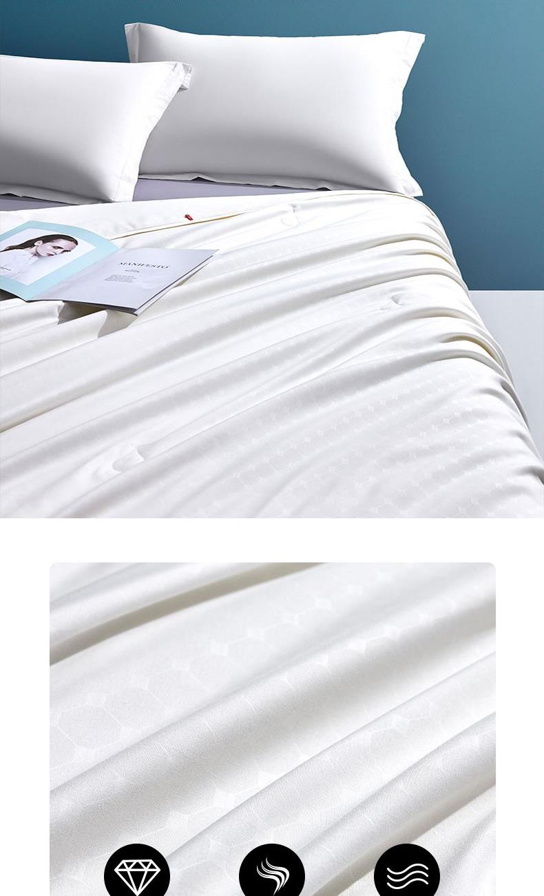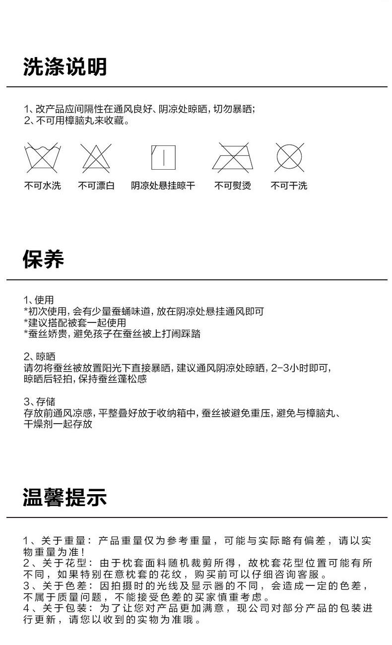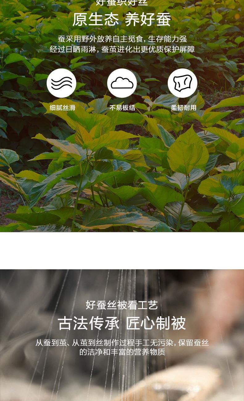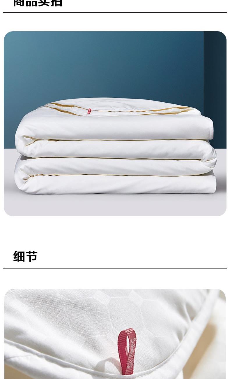 面料材质:聚酯纤维 规格尺寸:200*230cm 填充材质:柞蚕丝(中长丝棉) 填充克重:400g 产品包装:礼盒 1:*防螨面料舒适睡眠无忧虑,给你安心好眠,防止螨虫入侵,呵护肌肤健康。 2:甄选天然蚕丝填充优质层蚕茧制作而成,蚕丝为天然的蛋白纤维,其中蚕丝丝素蛋白含有多种氨基酸和微量元素,对肌肤有高亲和力,时刻享受轻柔呵护 3:精致压花工艺享受五星睡感,采用压花工艺制作的面料,柔软舒适,花型立体,莹润有光泽