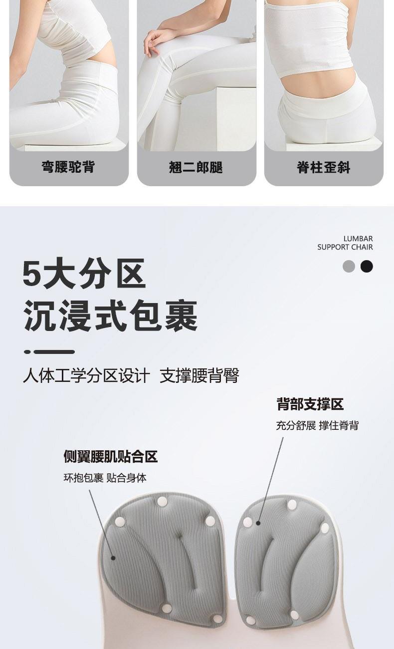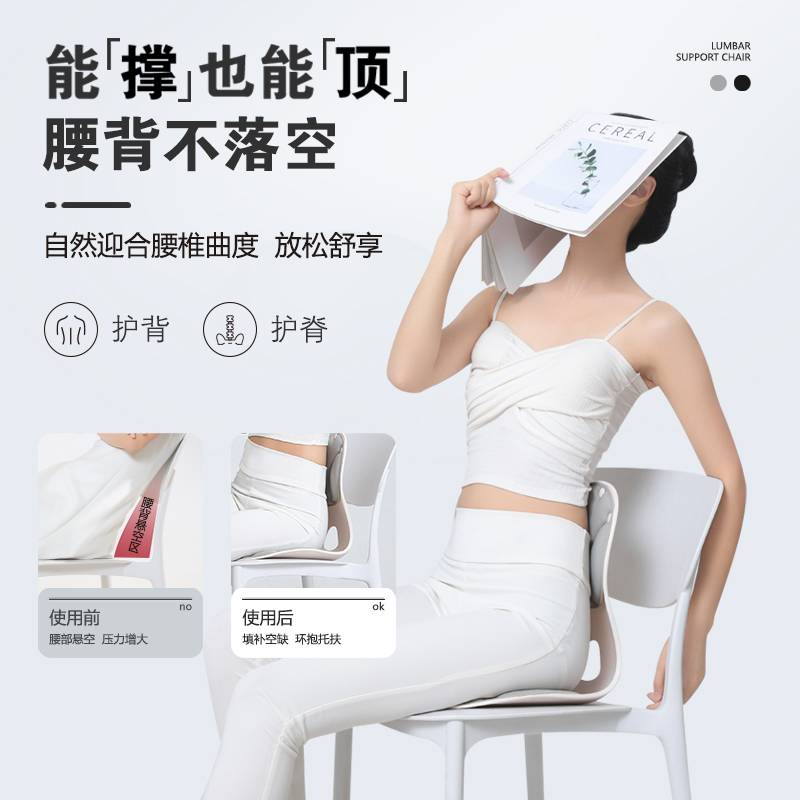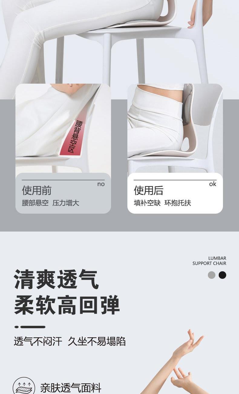 1、双翼环抱护腰,坐出优雅体态 2、工学设计,五大分区,支撑腰背臀 3、能撑也能顶,自然迎合腰椎曲度,放松舒享 4、透气高回弹,办公居家多场景适用,时刻撑腰