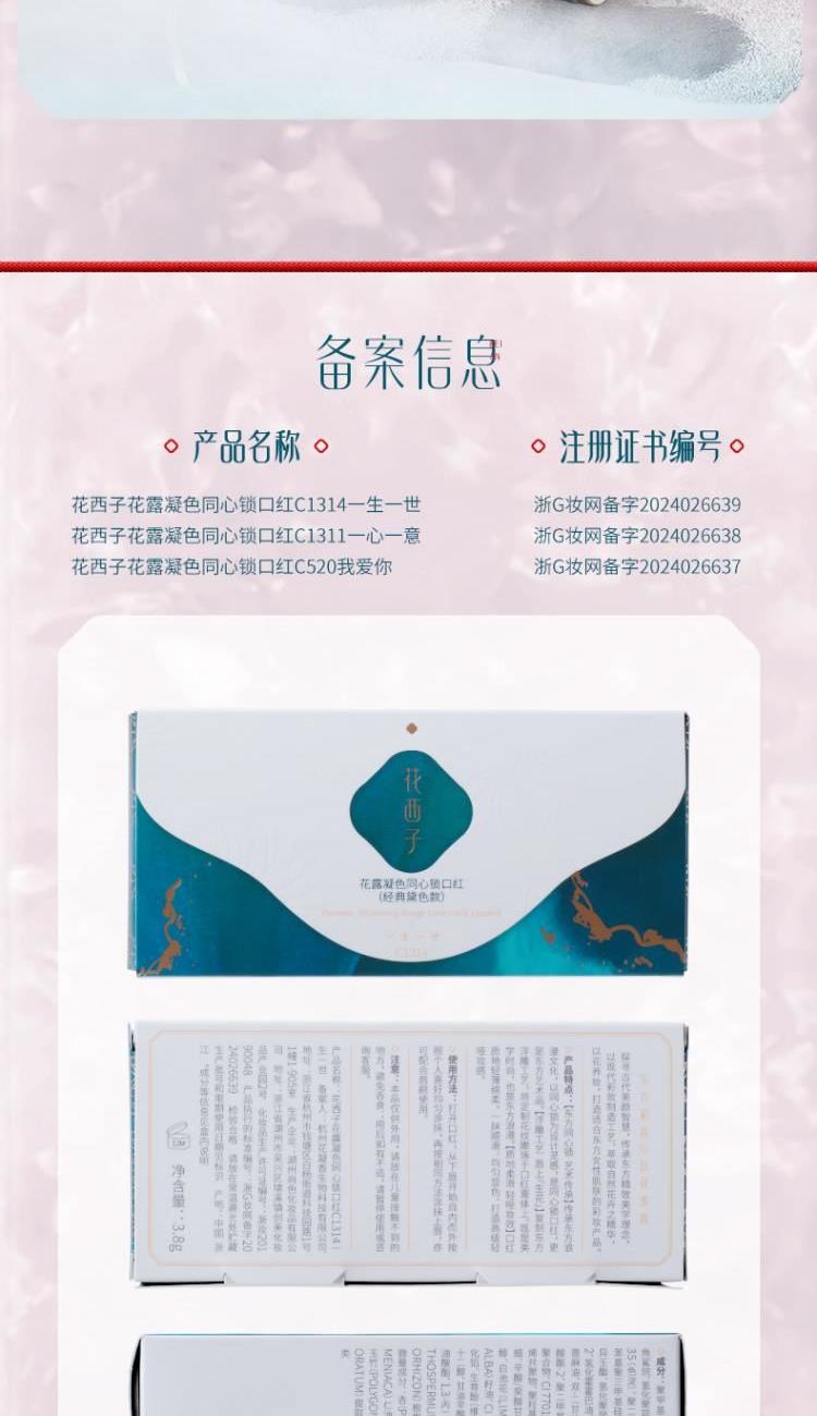 花西子花露养唇同心锁口红丝绒哑雾款C1314一生一世3.8g