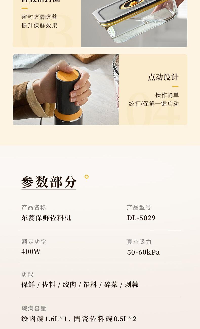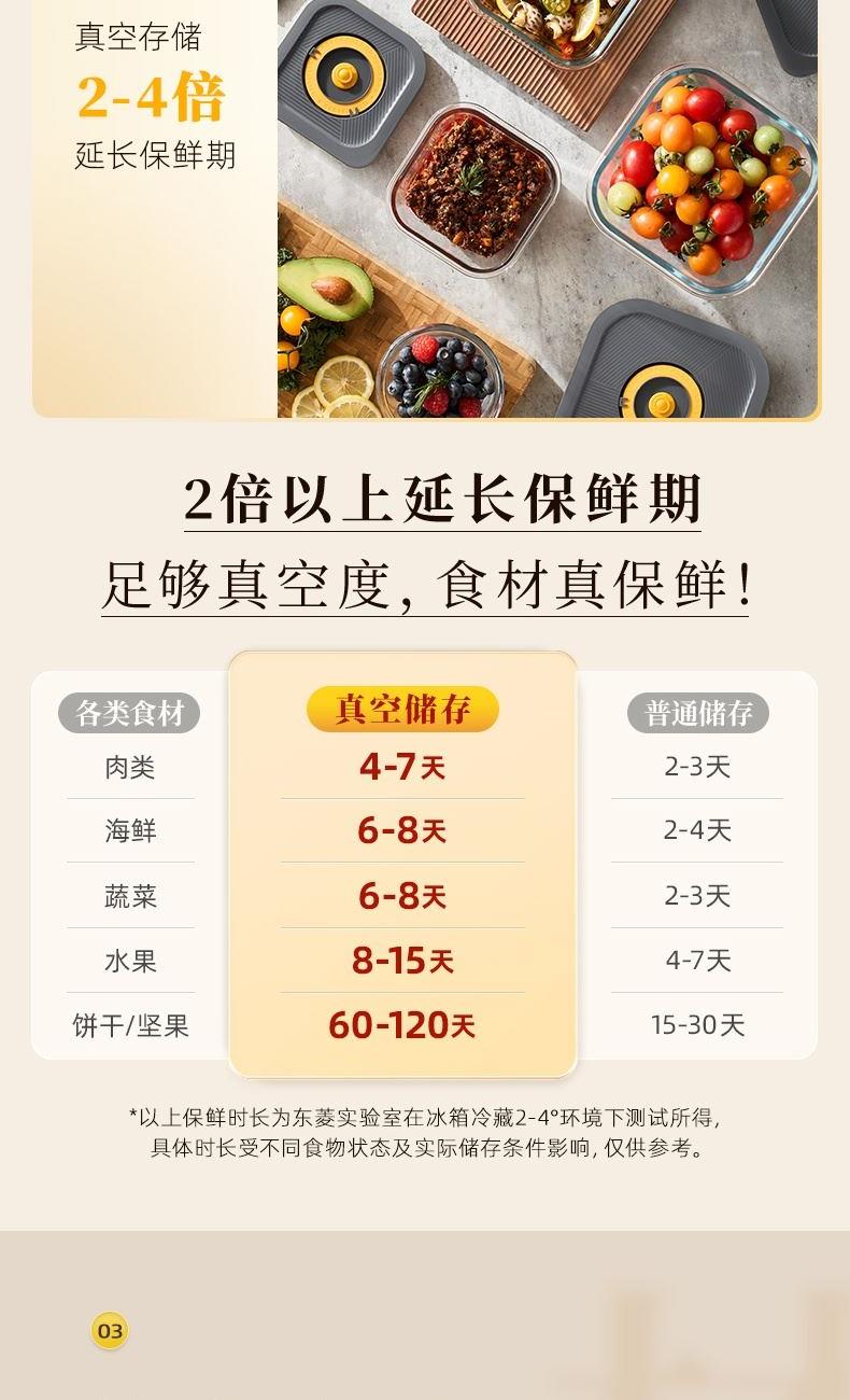 东菱真空保鲜佐料机+1480ML抽真空玻璃保鲜盒家用备餐