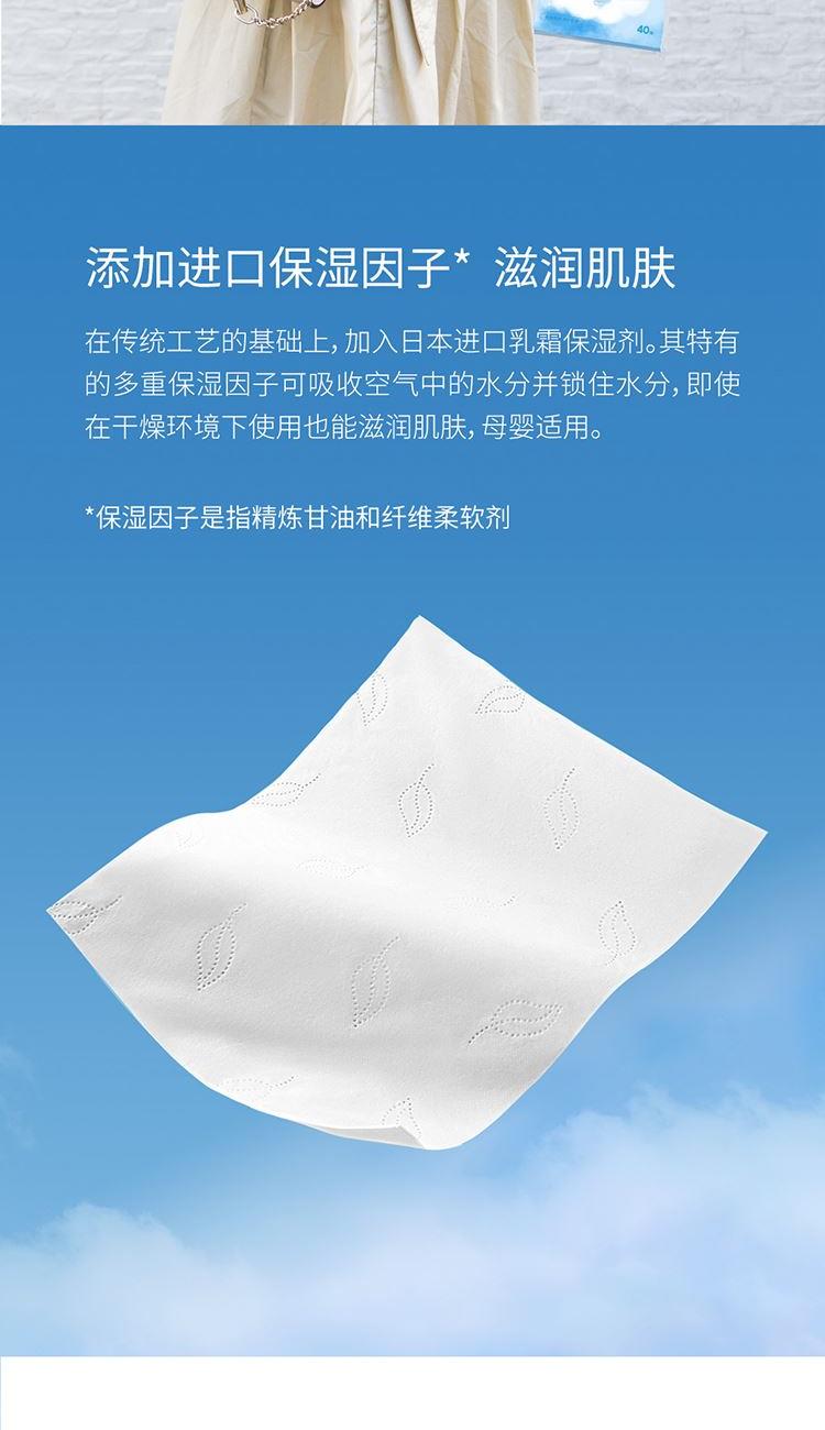 产品货号:170466 纸面规格:180*138mm(3层/抽) 产品毛重:310g 外箱尺寸:14.5*10*10cm 单包规格:138*90*18mm (40抽/包) 主要原料:原生木浆、保湿乳 保 质 期:3年