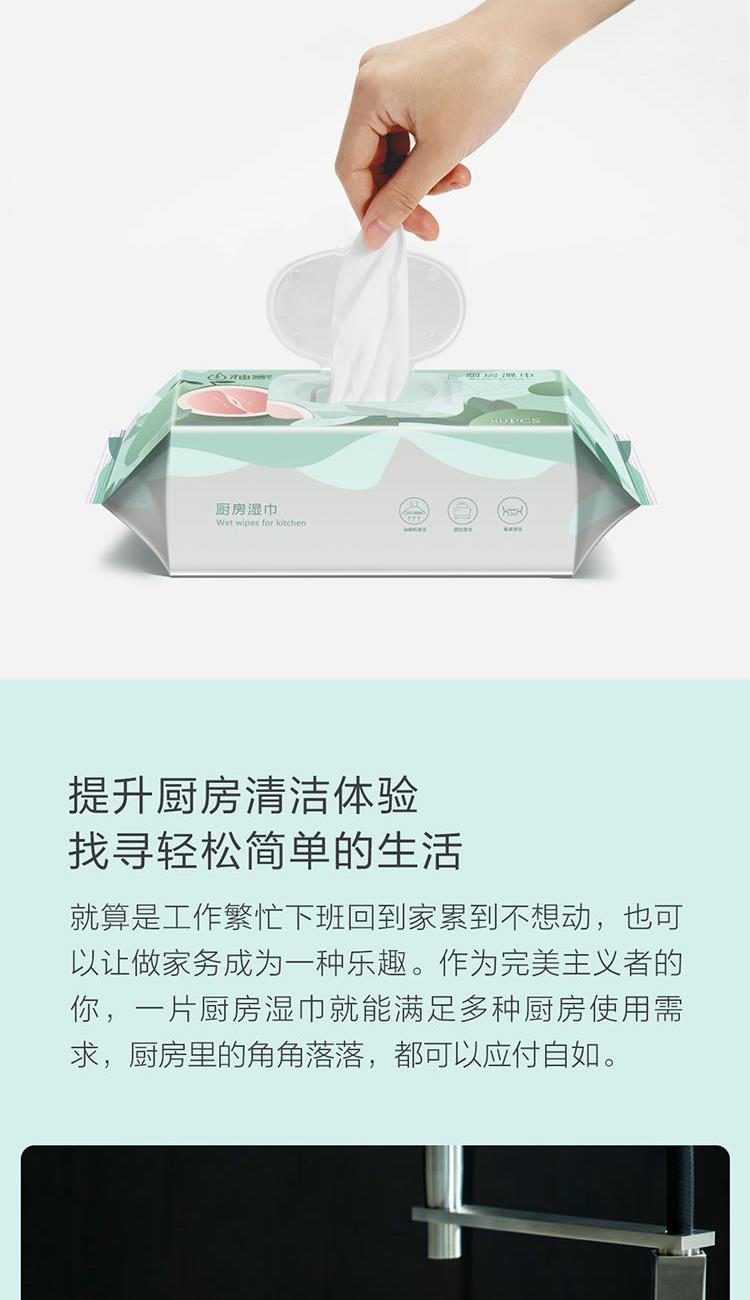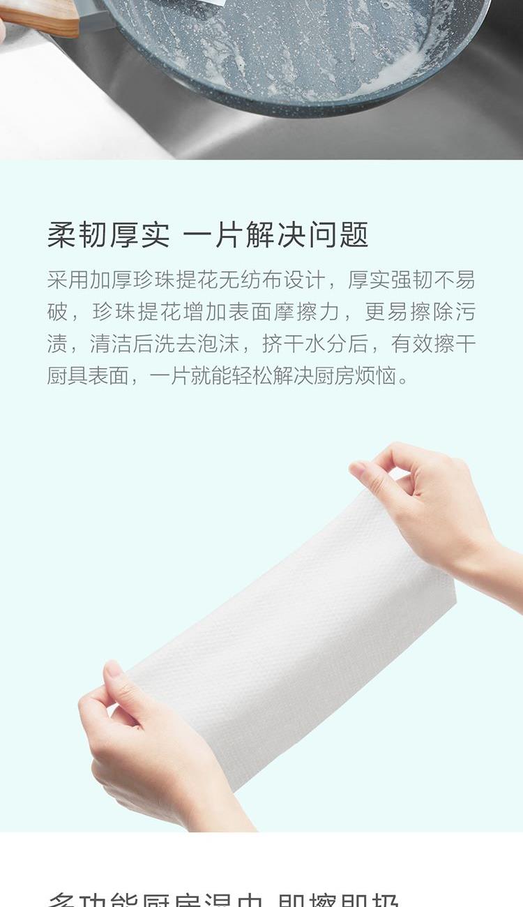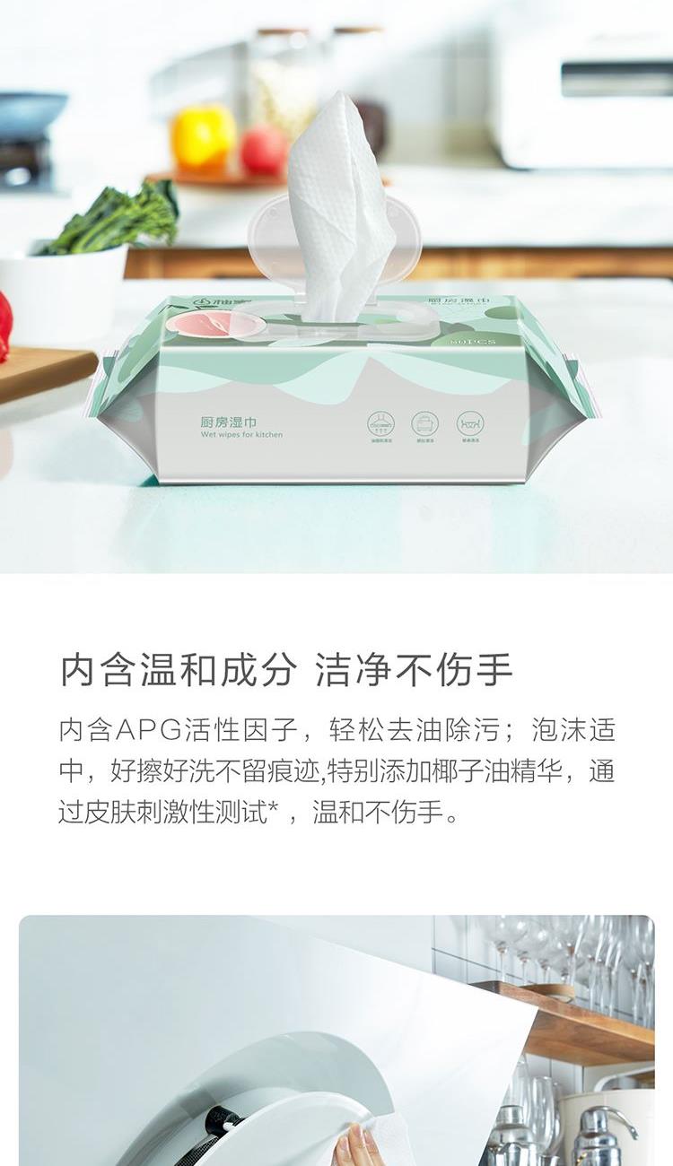 纸面规格:200*250mm(40片/包) 外箱尺寸:270*140*225mm 主要原料:纯化水、水刺无纺布、十二烷基糖苷(APG)、椰子油精华 保 质 期:2年 产品卖点: 1、高效去污,不伤厨具 2、温和不伤手:内含APG活性因子 3、柔韧厚实:加厚珍珠提花无纺布,强韧不易破 4、轻松抽取不连张,即擦即扔