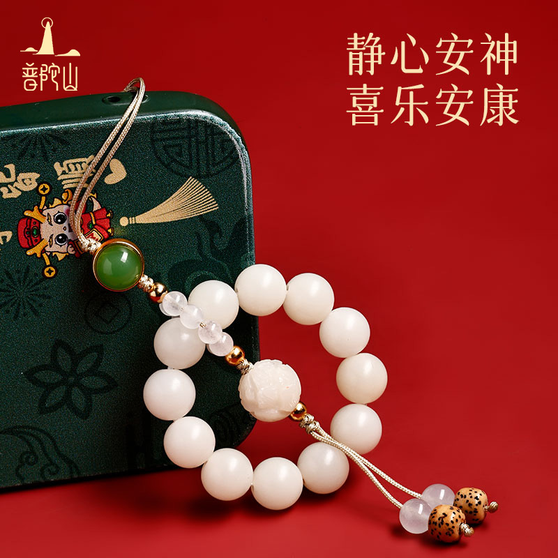 普陀山白玉菩提莲花手机链
