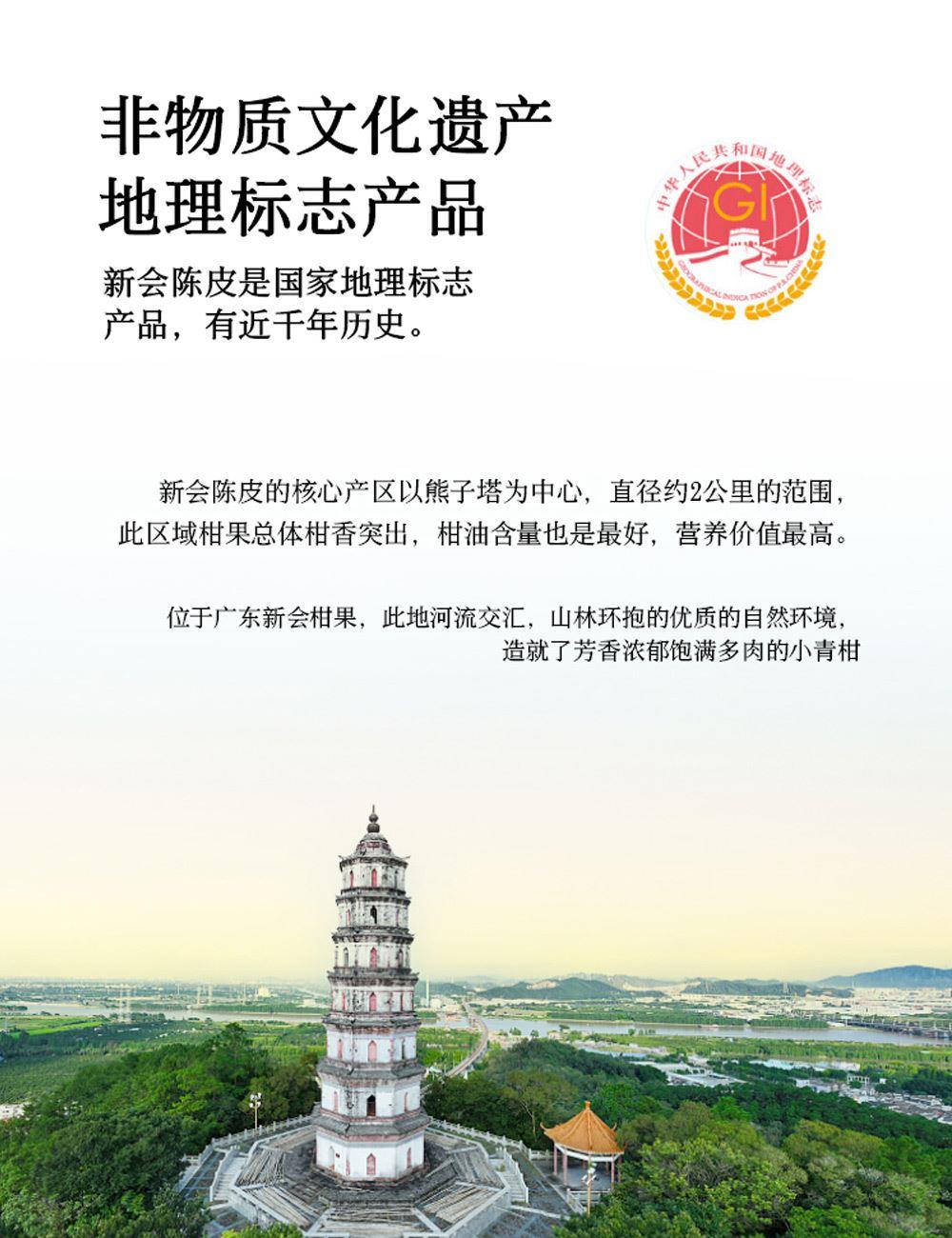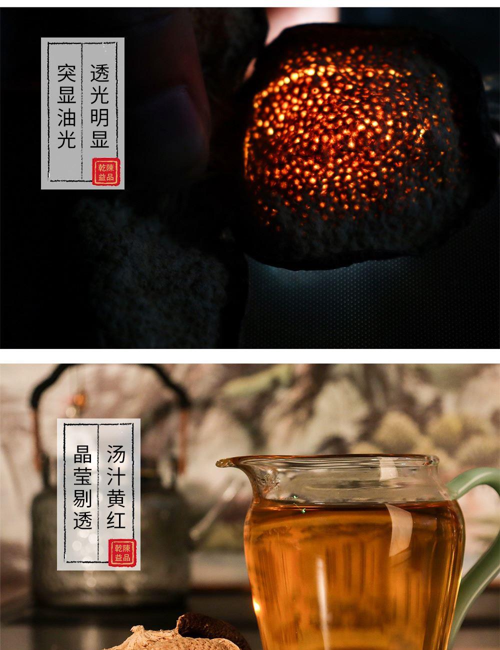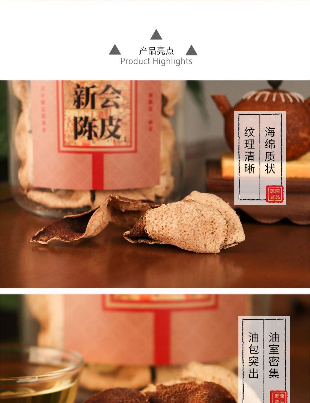 净含量:150g 毛重:1.85kg 产区:广东新会天马核心产区 原料:新会干仓陈皮 规格:单瓶 1.选用广东新会天马产区陈皮10年陈化原料 2.从采收,洗选,开皮,翻皮到晒皮贮存与陈化等每一个环节都坚持人手工制作,精心挑选。 3.新会陈皮味辛性温,甘香醇陈,油包粒大,油室饱满,芳香浓郁,具有唤醒味蕾,改善食欲不振,消滞健胃。 4.新会陈皮不仅能单独泡茶,还可以用来与其他茶叶搭配冲泡,白茶,红茶,普洱等。