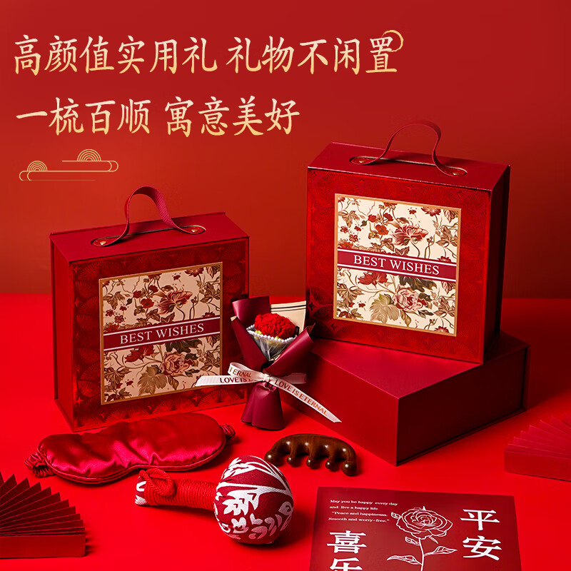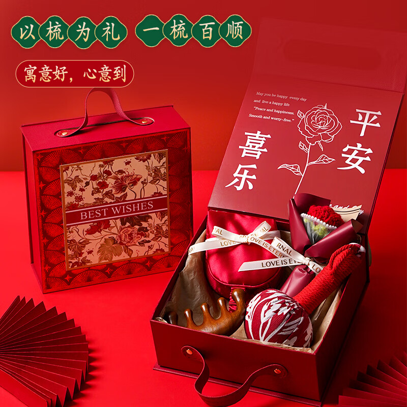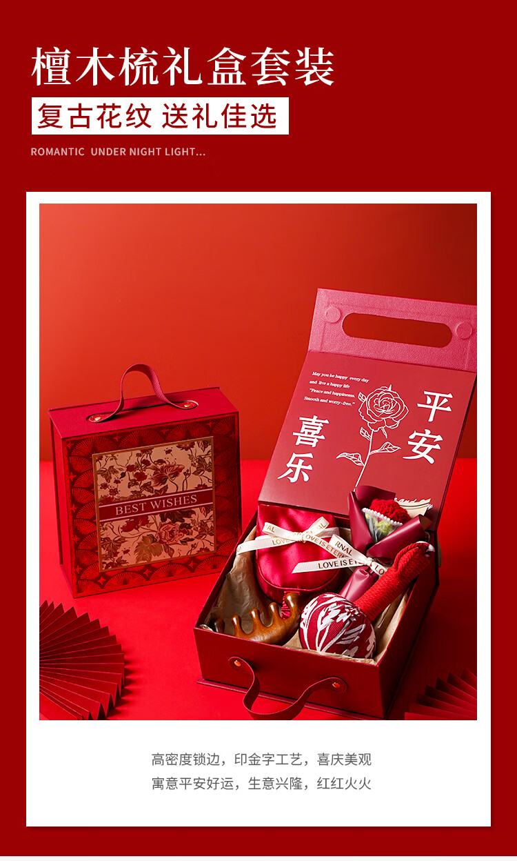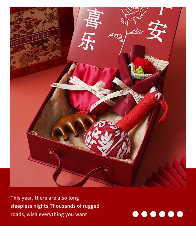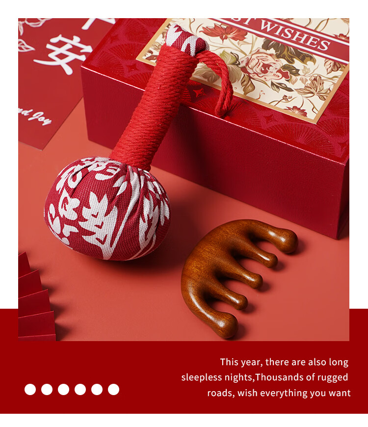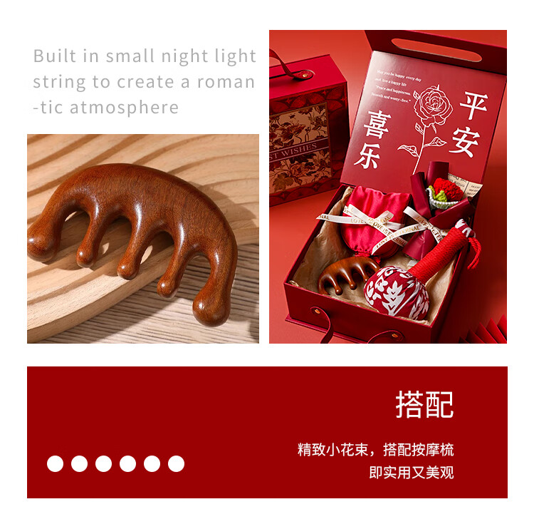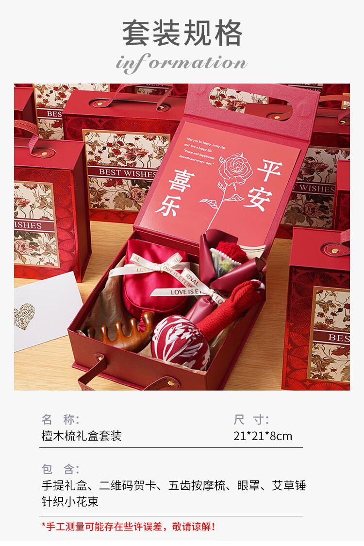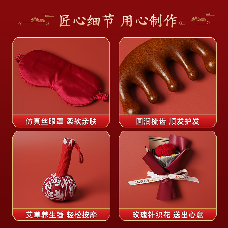 编码:W4156 内配:五指檀木梳+按摩捶+眼罩+针织小花束