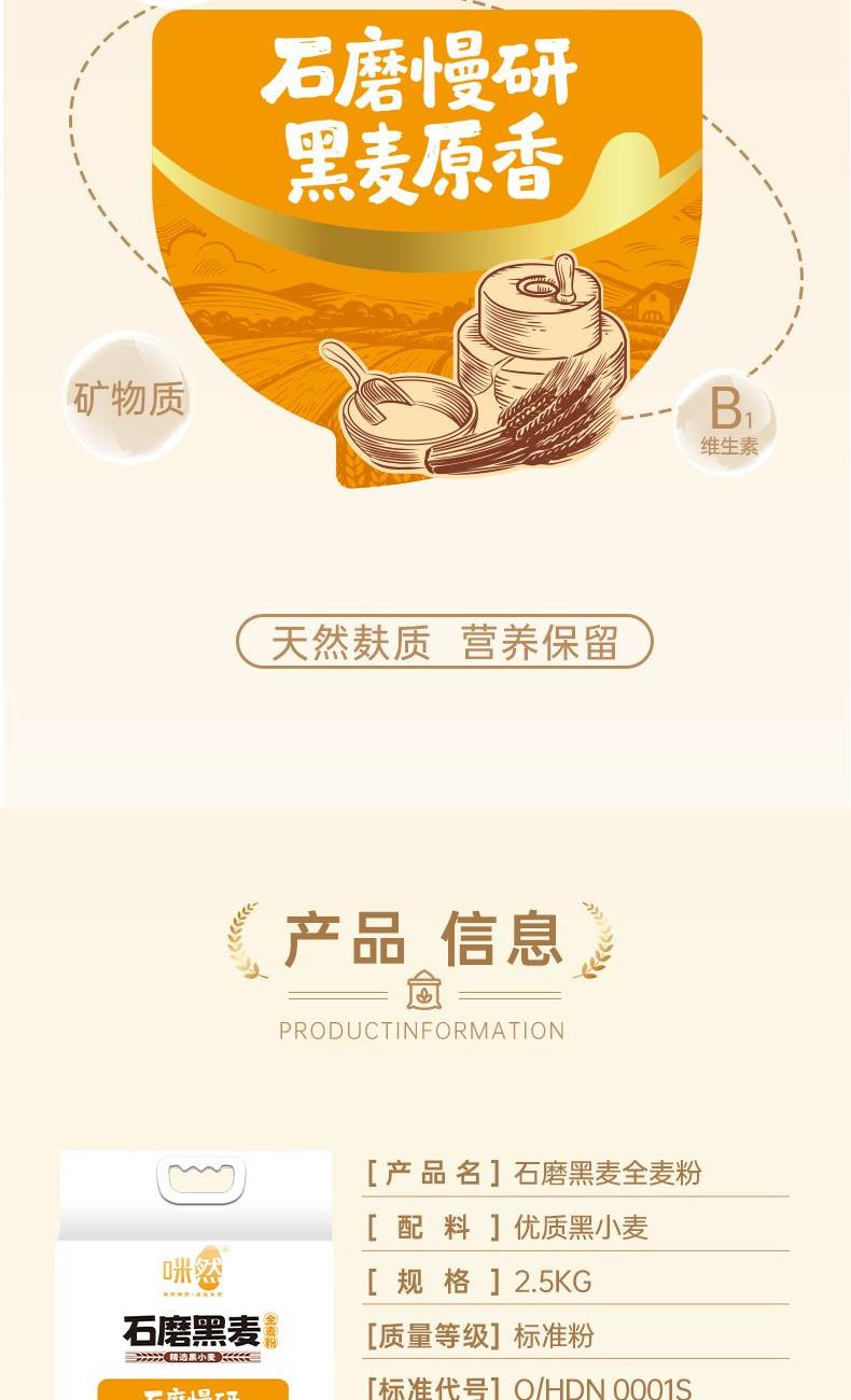 产 品 : 咪然石墨黑麦全麦面2.5kg 执行标准 : Q/HDN 0001S 保 质 期 :6个月 产 地 : 河南省濮阳市 箱 规 :10*2.5kg