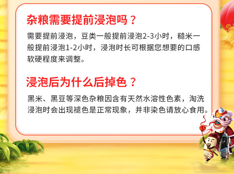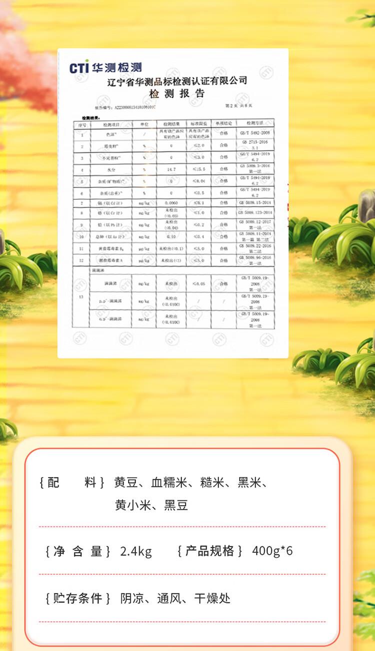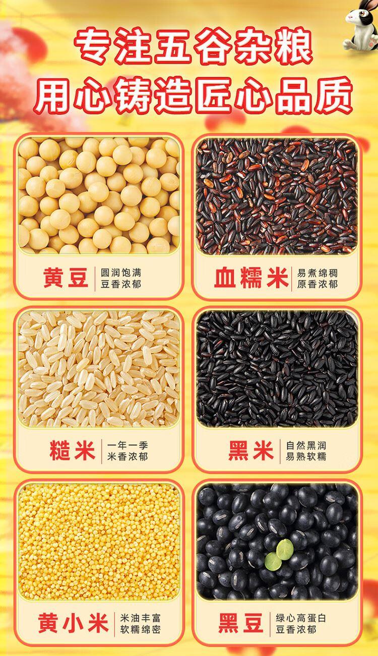 保质期:18个月 产品组合:糙米、血糯米、黑米、黄小米、黑豆、黄豆(各400g) 产品卖点:自由搭配,多变多样,一次备齐,开启均衡多样生活