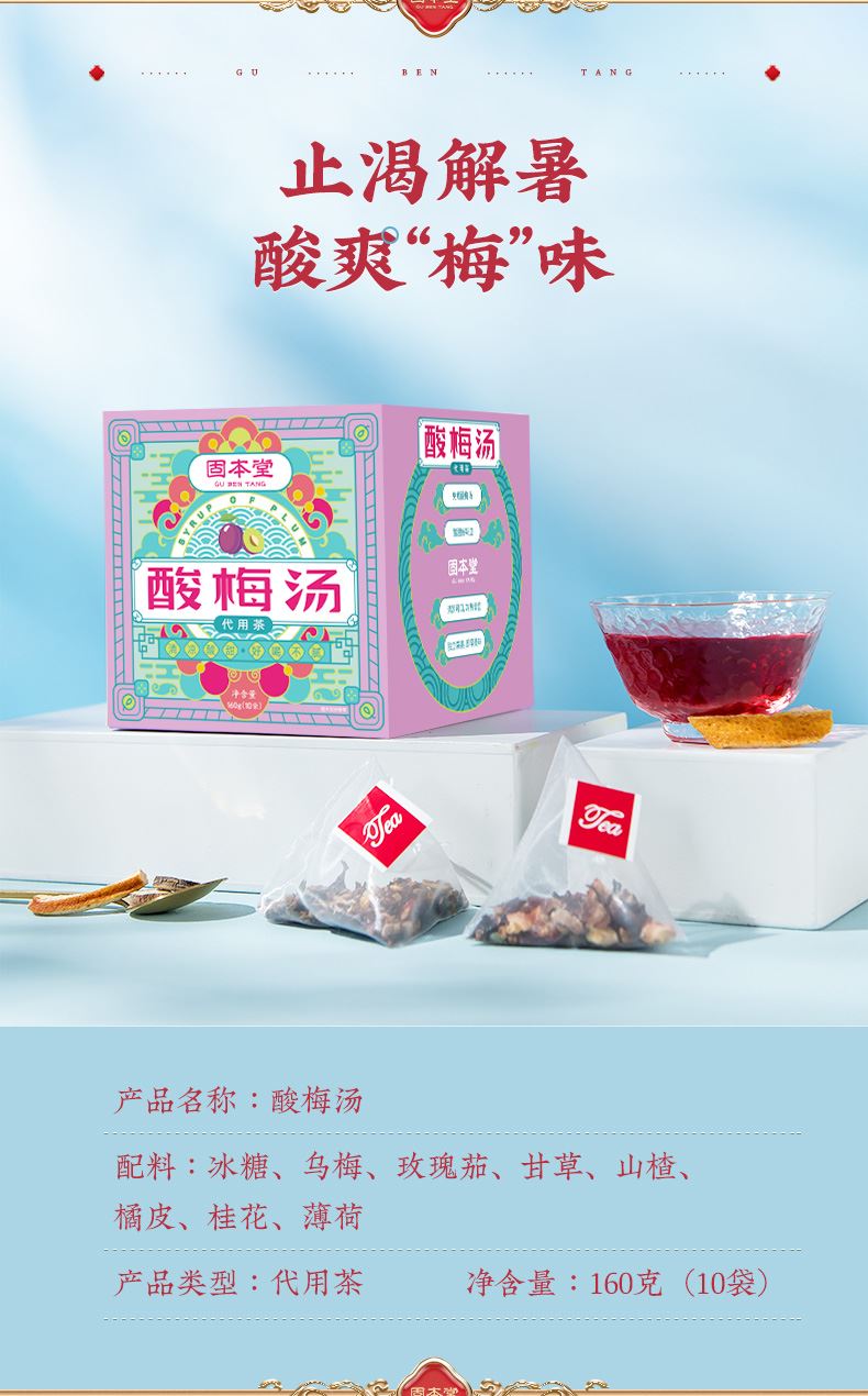 固本堂酸梅汤代用茶160克(16g*10)包 6973700382780 160克(16g*10)包 0.5(产品+打包箱) 60 茶 1030308010000000000 12个月