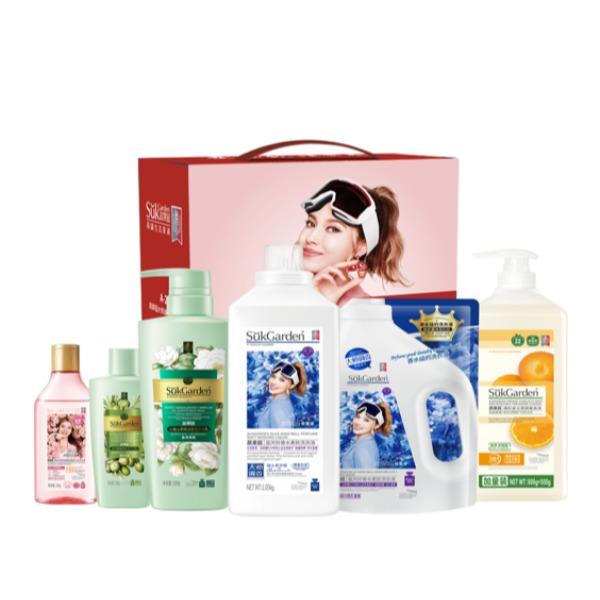 SukGarden白檀山茶精油香氛沐浴乳*500g*1 SukGarden蔬果园皇后香橄榄精油洗发乳*200g*1 SukGarden蔬果园维多利亚玫瑰精油香氛内衣洗衣液*100g*1 SukGarden蔬果园蓝风铃香水柔软洗衣液*1.05kg*1 SukGarden蔬果园蓝风铃香水柔软洗衣液(袋装)*500g*1 SukGarden蔬果园橘彩星光果蔬餐具净 泵装*1.3kg*1 蔬果园大师调香品 牌通用礼盒(A-26)-彩箱*250*125*295mm*1