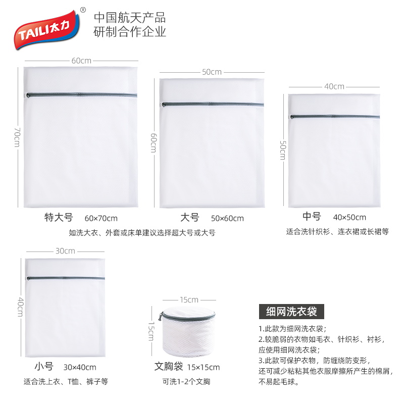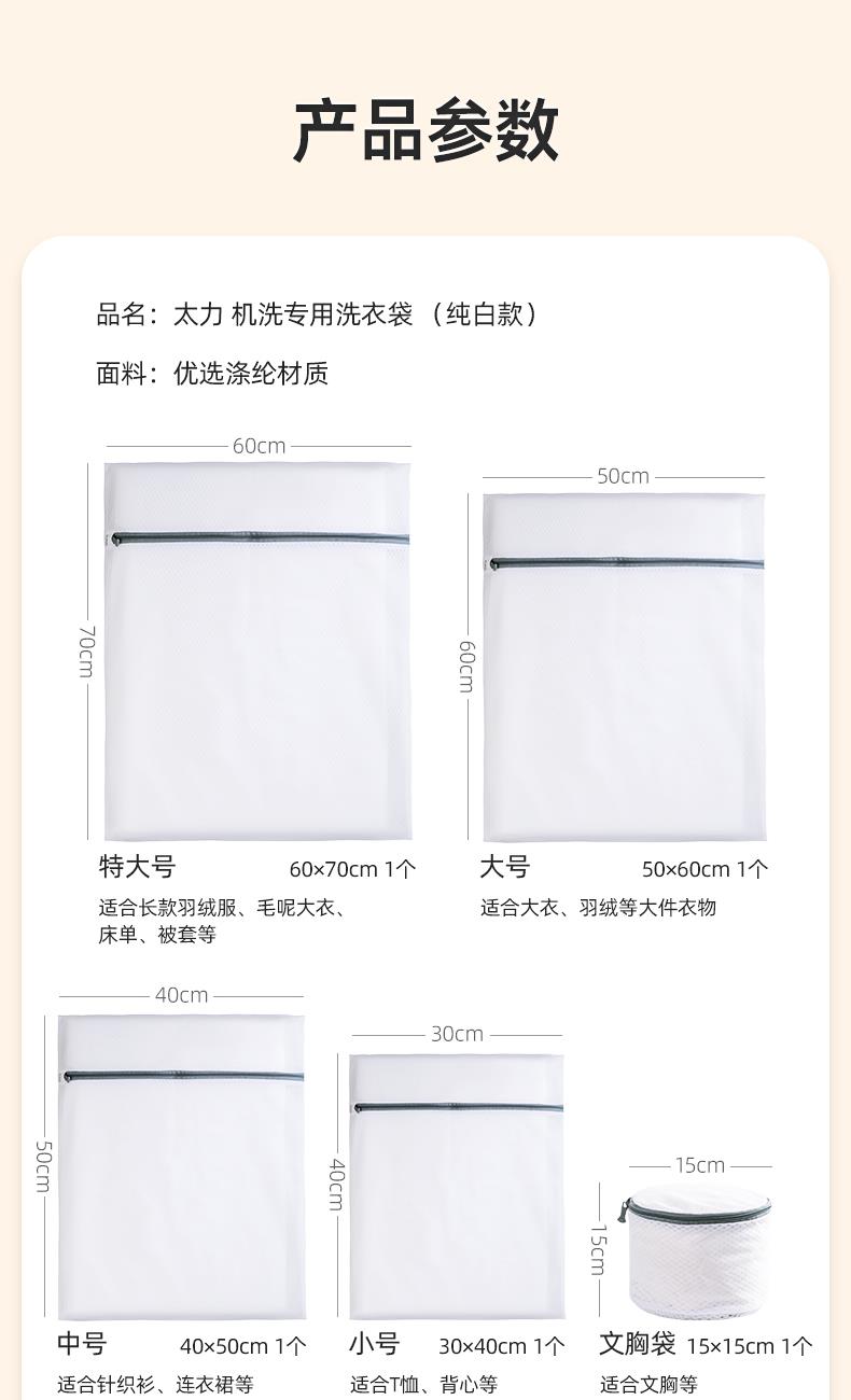 产品尺寸:30*40cm+40*50cm+50*60cm+15*15cm 规格:多种尺寸 材质:优选涤纶材质 商品类型:个人洗漱,清洁,护理 图案:纯色 功能:便携,不变形 产品描述:升级涤纶网料,柔韧抗拉防变形,拉链头可隐藏
