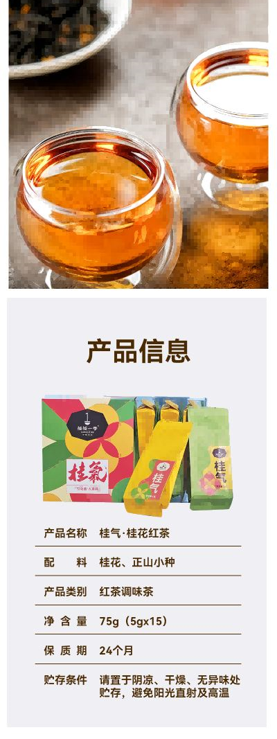 产品规格:桂花红茶5g*15泡 产品尺寸:22*14*5.5cm 保质期:18个月