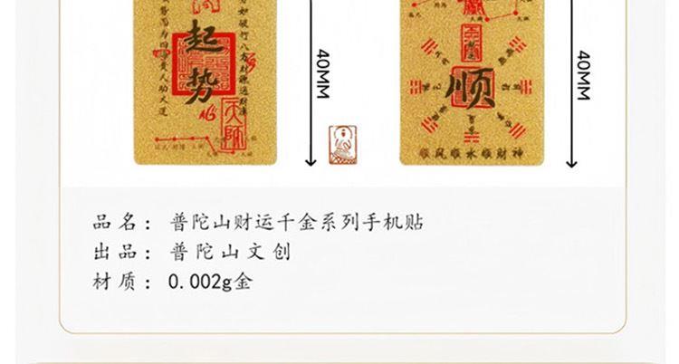 财富与富贵: 直接的含义就是财富、富贵和荣华。贴上财运千金系列,寓意着招财进宝、财源广进、生意兴隆。 吉祥与喜庆: 金色是祥瑞之色,象征着吉祥、光明和辉煌。它能带来积极向上的能量,寓意着生活幸福美满,前途光明。 辟邪与护身: 在传统文化中,黄金被视为纯净、尊贵之物,具有抵挡煞气、驱邪避凶的作用。金箔虽薄,但也承袭了这一寓意,能为使用者提供守护。