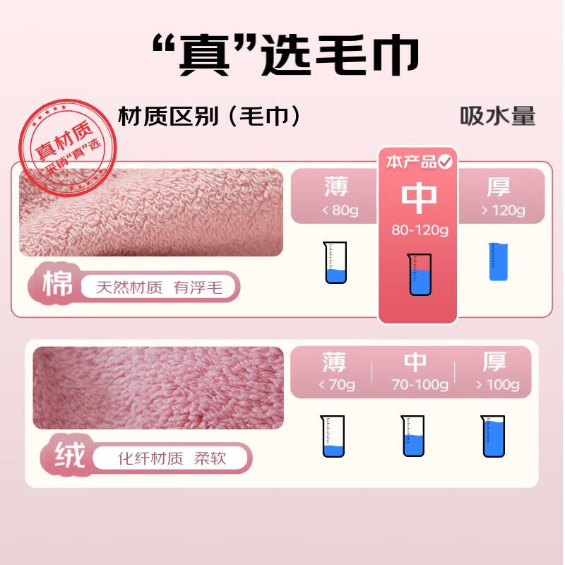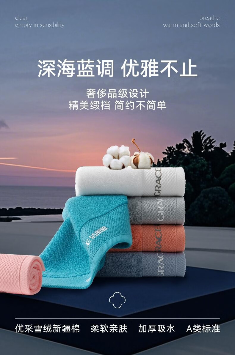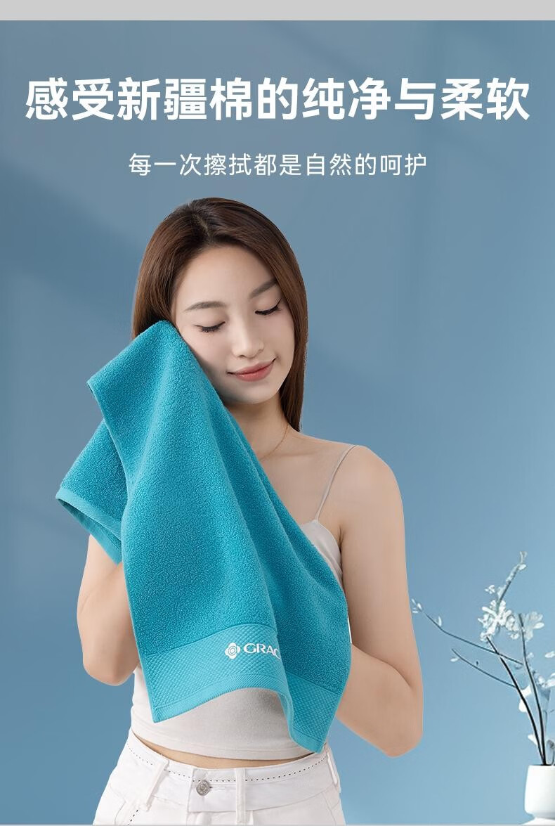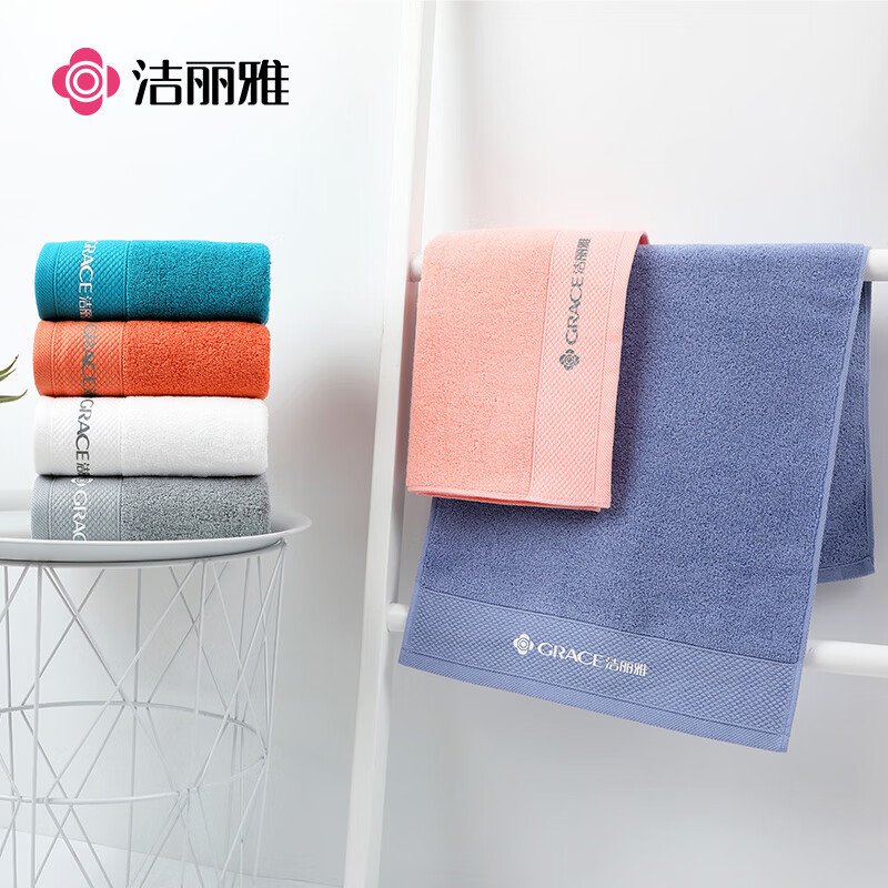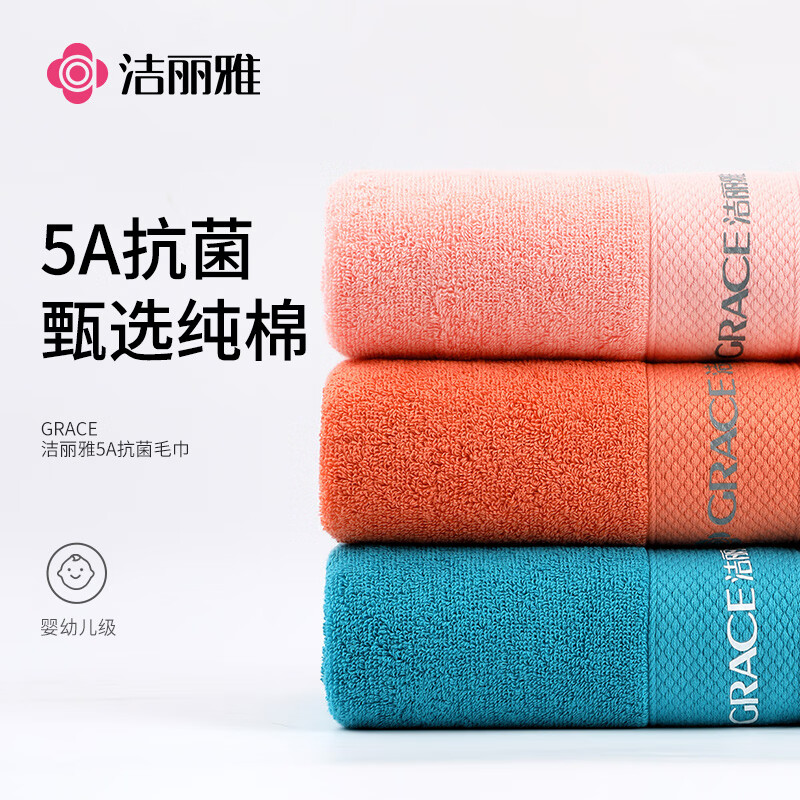 洁丽雅纯棉5A抗菌毛巾2条装女家用酒店20250508
