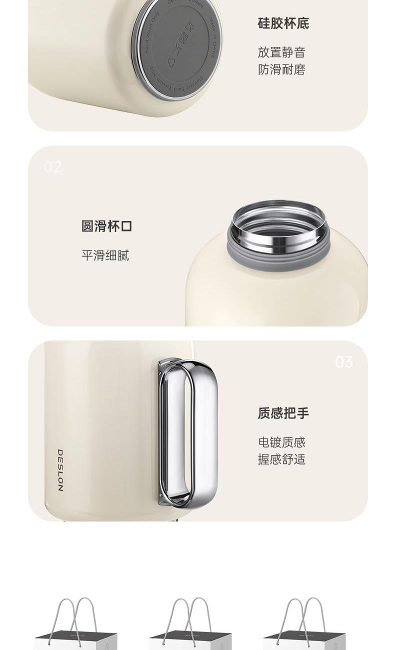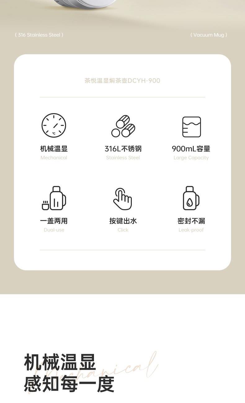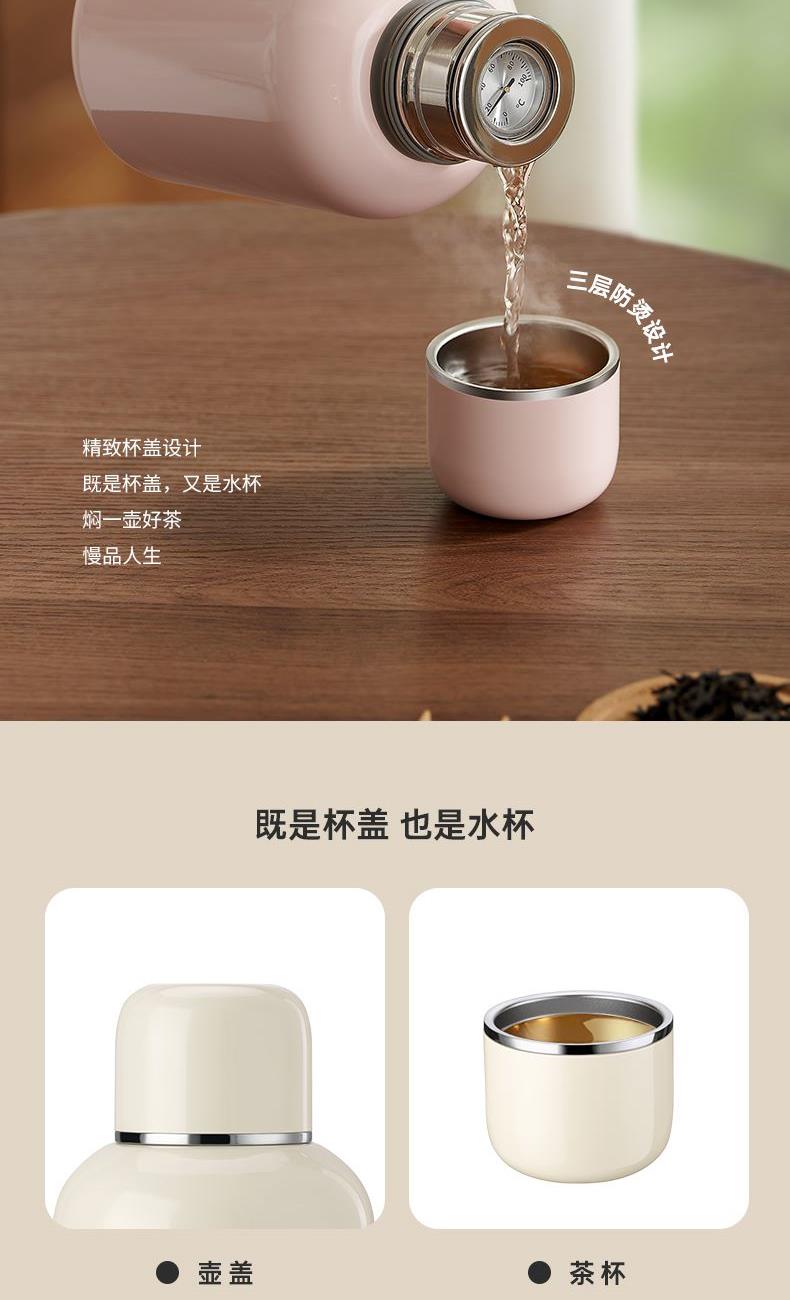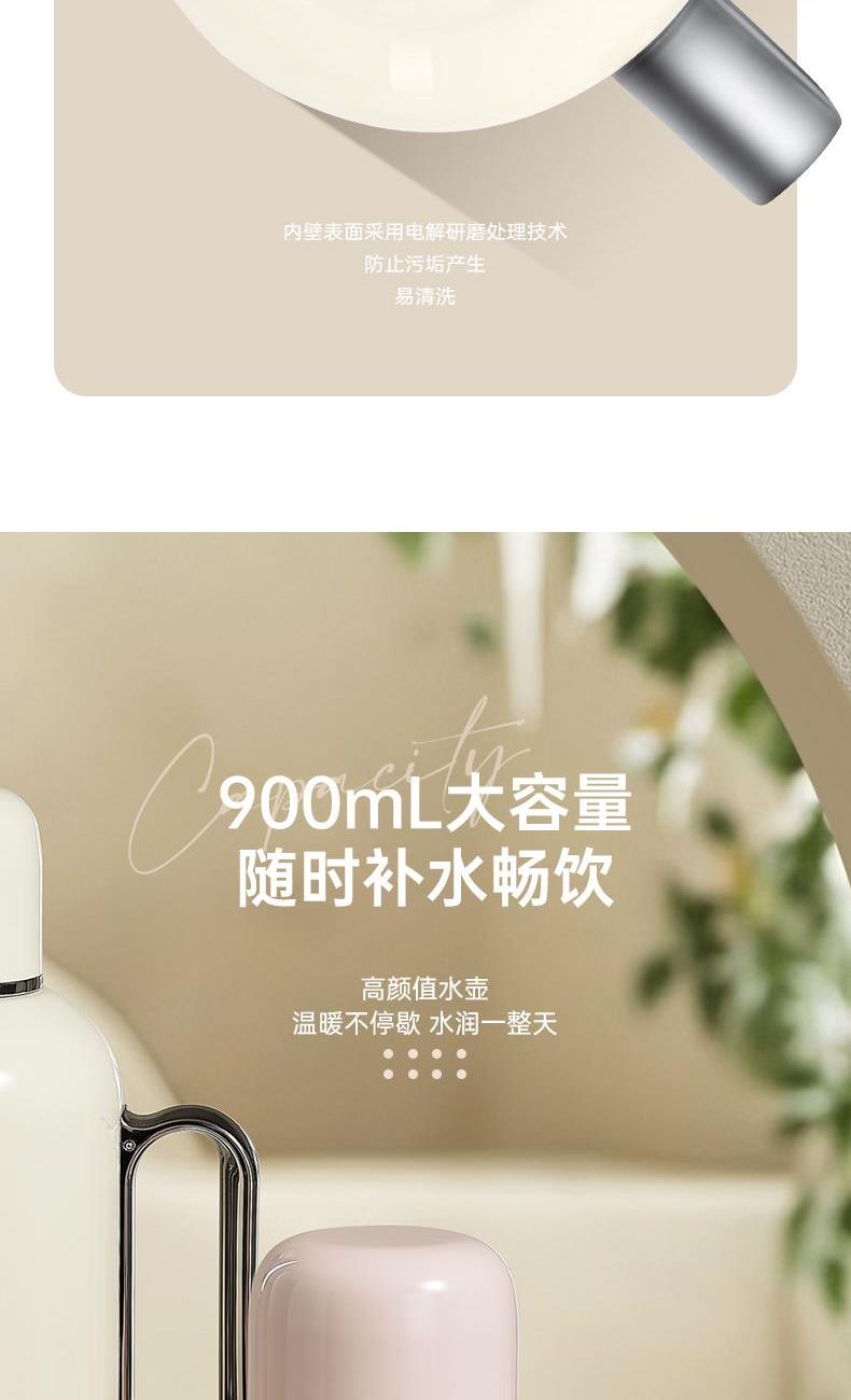 产品容量:900ML 产品口径:4.8CM 产品颜色:米白色(WH)、藕粉色(PK)、青瓷绿(GN) 杯体材质: 内胆奥氏体型不锈钢022Cr17Ni12Mo2(食品接触用) 外壳奥氏体型不锈钢06Cr19Ni10(食品接触用) 滤网材质:奥氏体型不锈钢06Cr17Ni12Mo2(食品接触用) 塑 料 件:PP(食品接触用) 密 封 圈:硅胶(食品接触用) 保温效果:47℃以上(24小时) 产品特点: 1. 壶身内壁采用316L不锈钢,外壁采用304不锈钢,健康环保; 2. 机械温显设计 把控温度; 3. 内壁表面采用电解研磨处理技术,不生锈,不氧化,防止污垢产生,易清洗; 4. 时尚外观设计,高贵大方,手感细腻光滑,质感非凡。