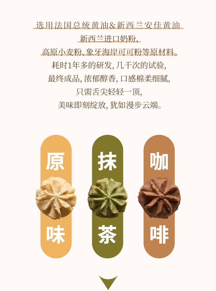 产品净含量:505g 产品保质期:8个月 产品包装:精致铁罐配精美礼品袋 产品卖点:全网热销1000w颗,小熊曲奇配料干净、选用法国总统黄油,新西兰进口奶粉,三个零添加(膨松剂、色素、香精),无反式脂肪酸,小孩、孕妇、老人放心食用。在全国专柜和专卖店有500多家,品质保证,售后安心,有保障