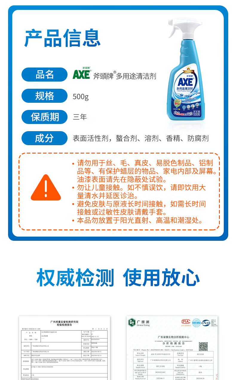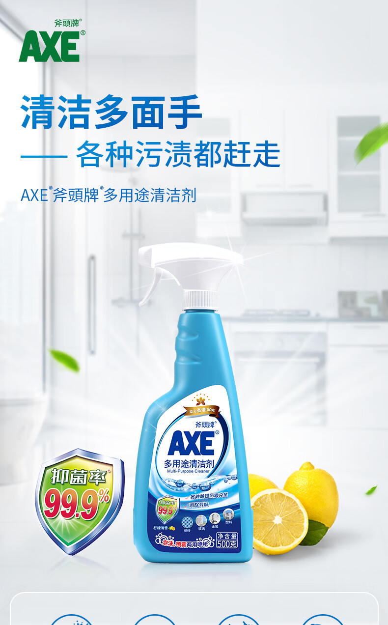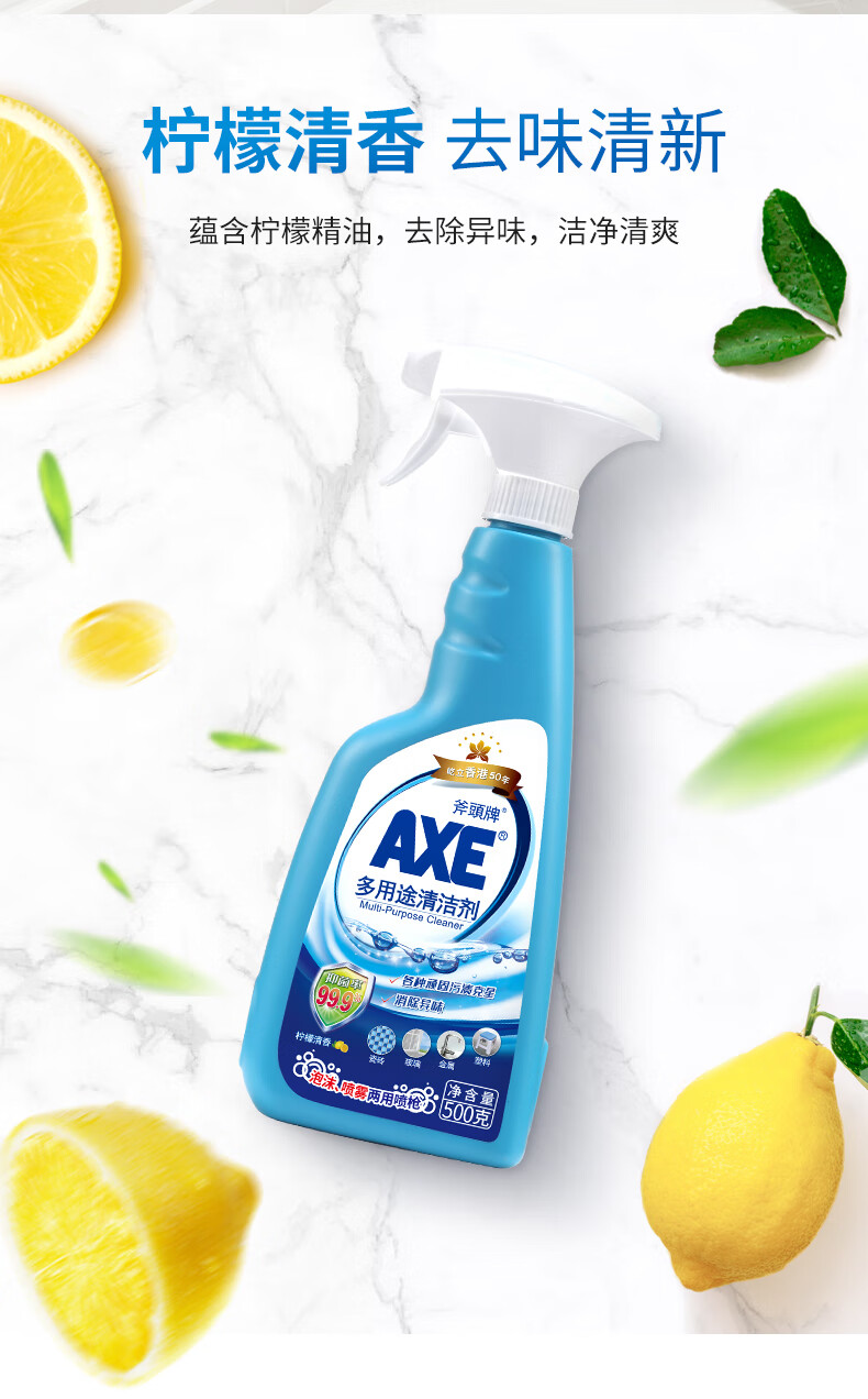 AXE多用途清洁剂(柠檬)500g 斧頭牌 多用途清洁剂 保质期:三年 成分 表面活性剂,螯合剂、溶剂、香精