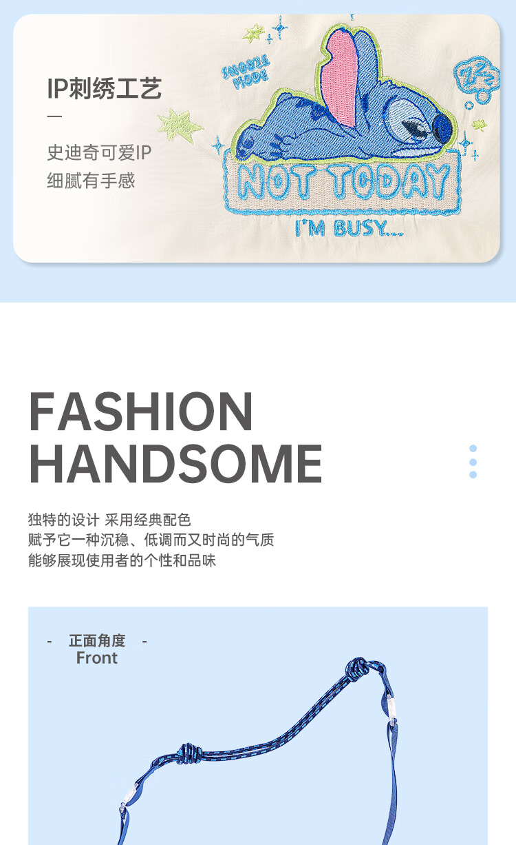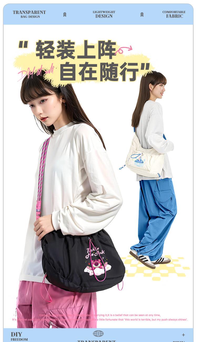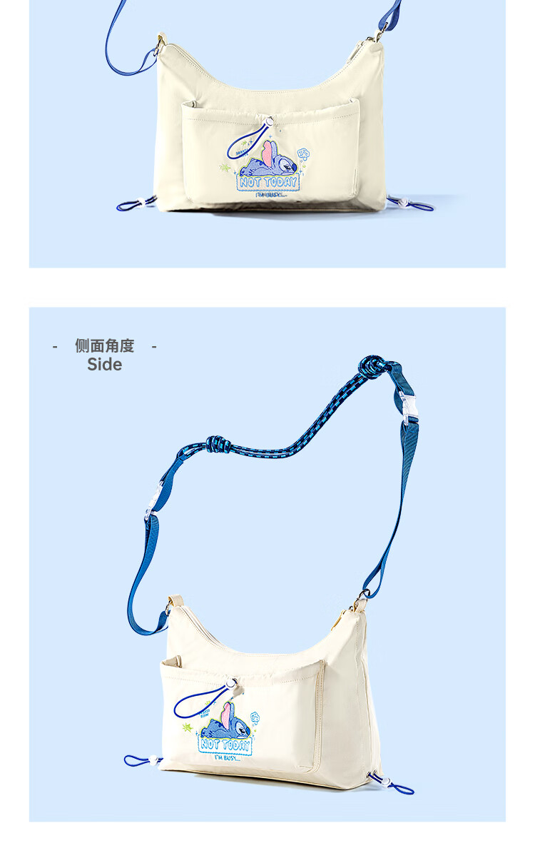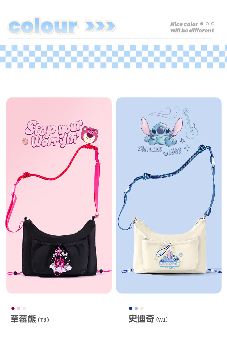 迪士尼(Disney)斜挎包学生出游包外出可爱单肩包初中高中生轻便斜挎包 型号:B25273 产品卖点说明:轻巧便捷,一包多用,大容量,便捷前袋,防泼水面料,休闲单品,厚实挂绳,IP刺绣工艺