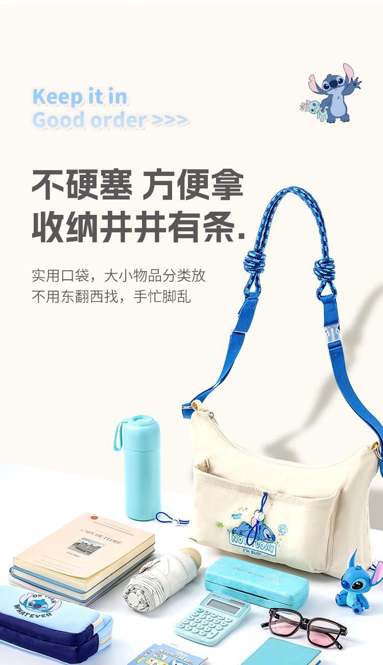 迪士尼斜挎包设计感小众初高中大学生多层单肩包B25273
