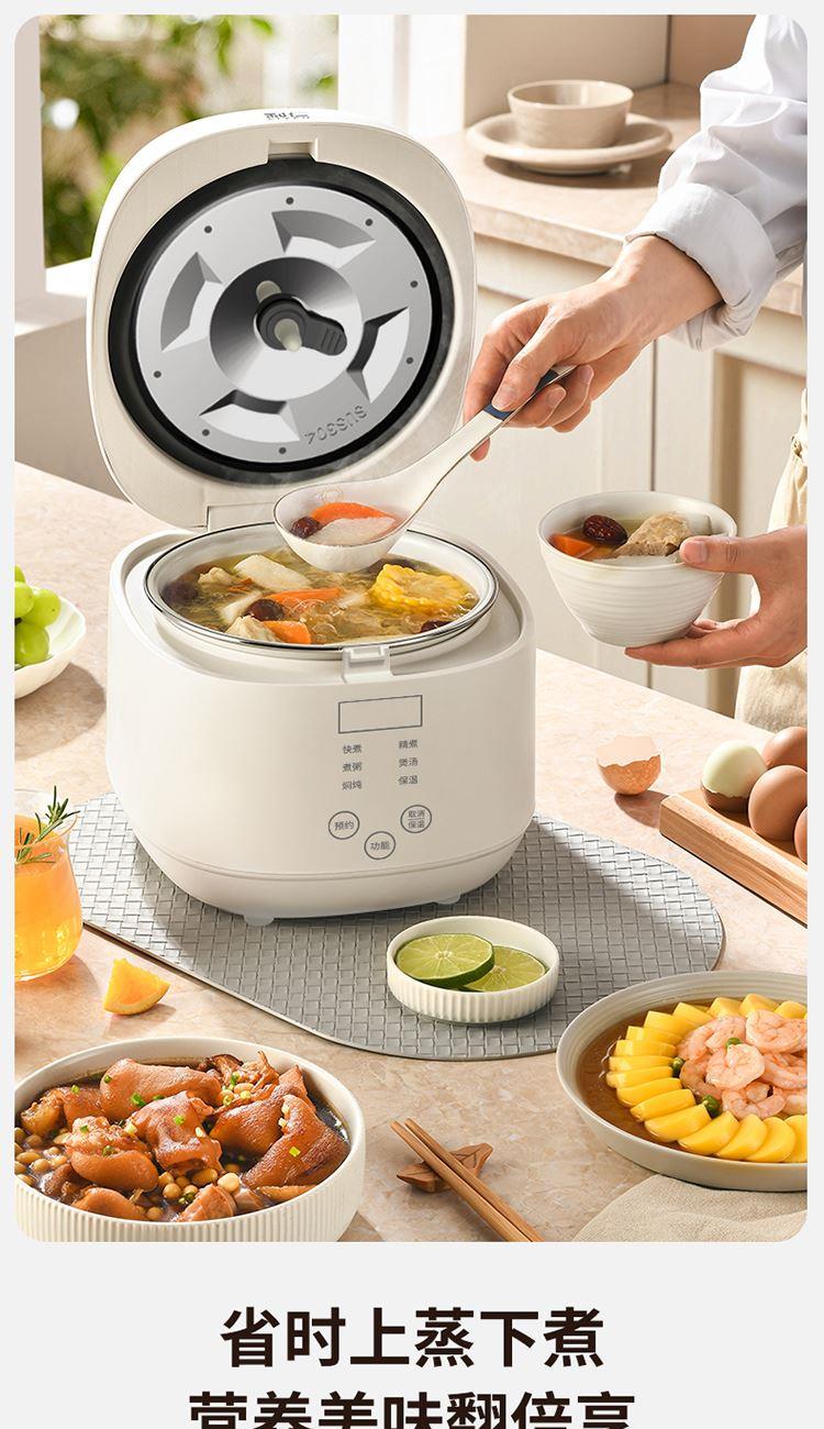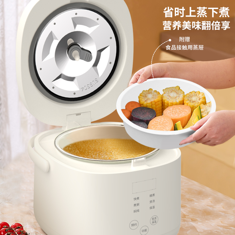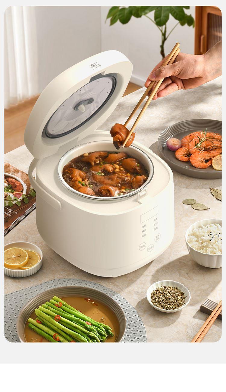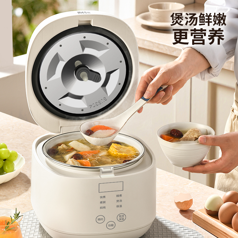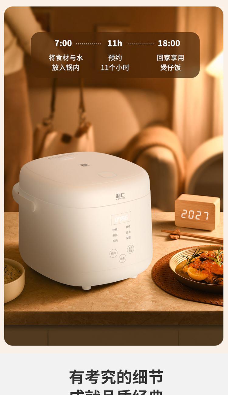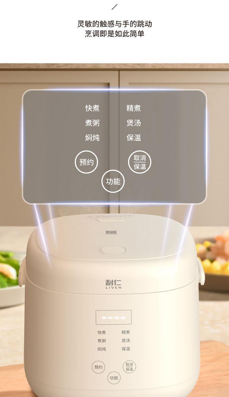 陶瓷油不粘内胆,守护家人饮食健康 2L小家庭容量,6层厚实结构加固耐磨 24H智能预约,提前预约准时吃饭 可煲可煮享尽一锅美食诱惑 七大功能菜单,一键解锁