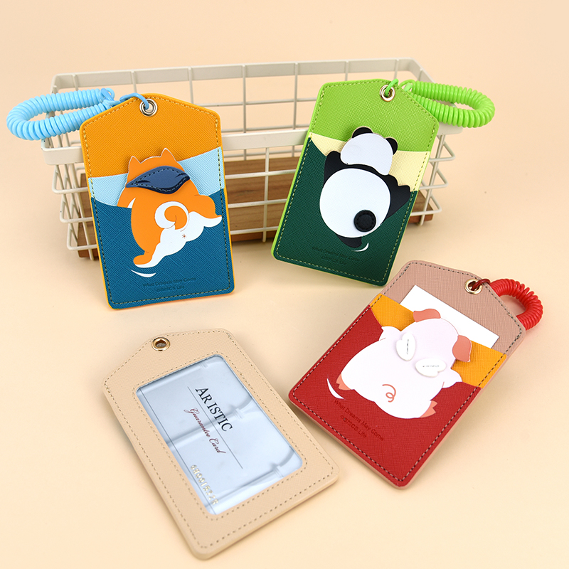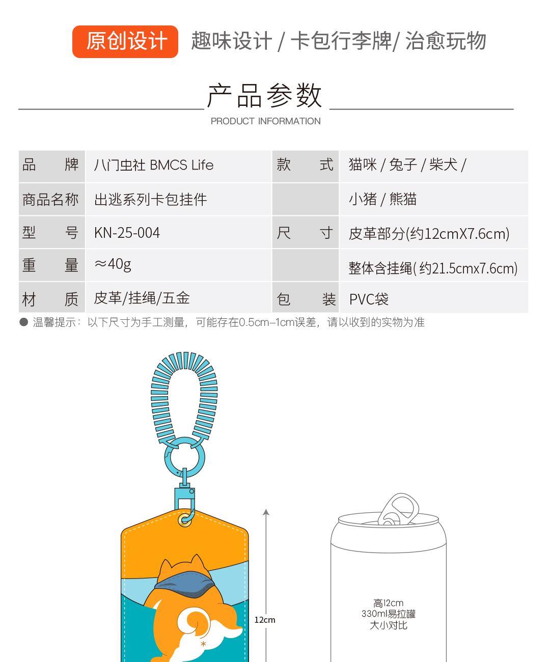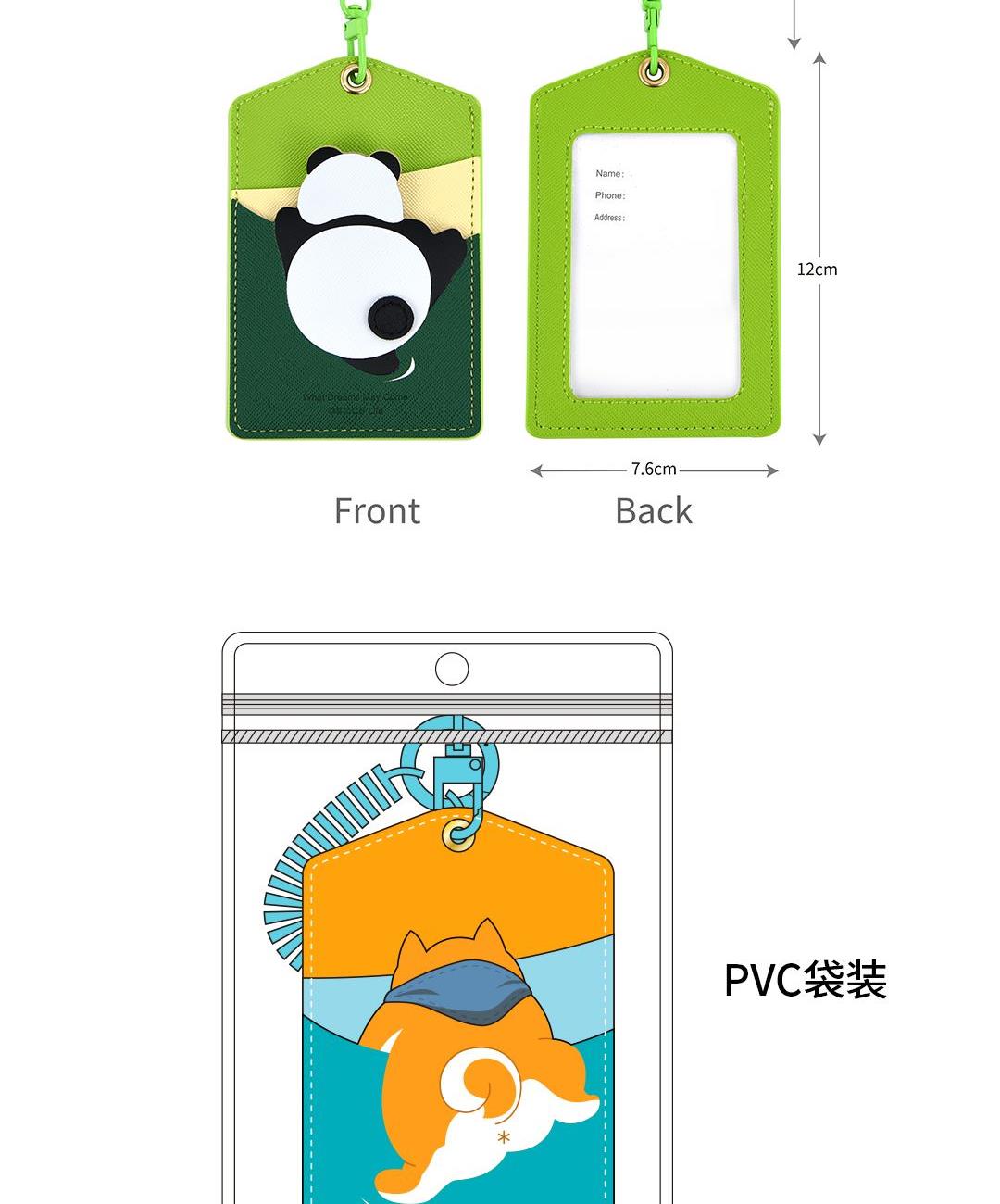 产品尺寸约12cm*7.6cm, 款式:猫咪,小兔,柴犬,小猪,熊猫 产品可多功能使用,如做卡包/卡套/工作牌等 选料选用PU皮材质,耐磨耐用不易变形, 做工上精致的缝合走线,牢固不脱线, 挂件边缘皮革手工多边打磨,不毛糙,经久耐用