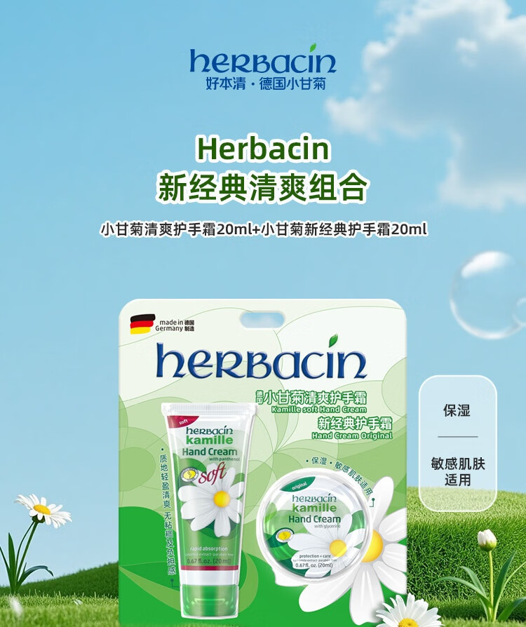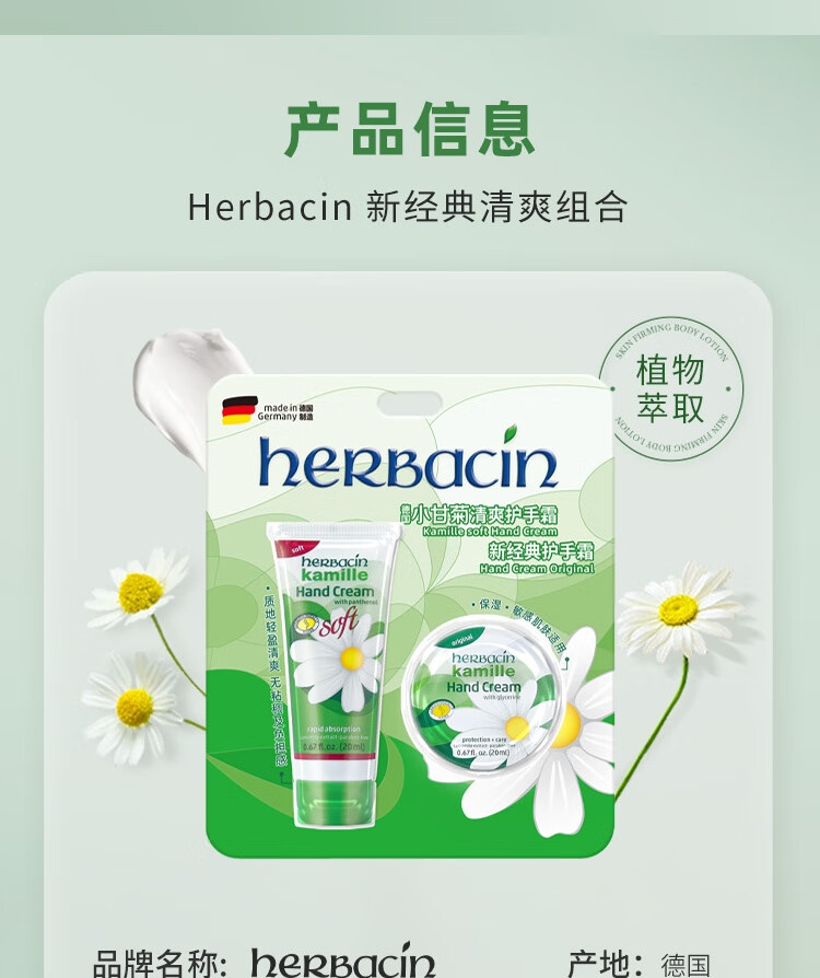 原产地:德国 规格:新经典护手霜 20g,清爽护手霜 20g 功效:滋润手足、抚平粗糙、轻盈舒缓、补水防护、打造细化水嫩肌肤 保质期:4年 适合肤质:所有肌肤 礼盒尺寸: 16*13.5cm 条形码:4013718981628