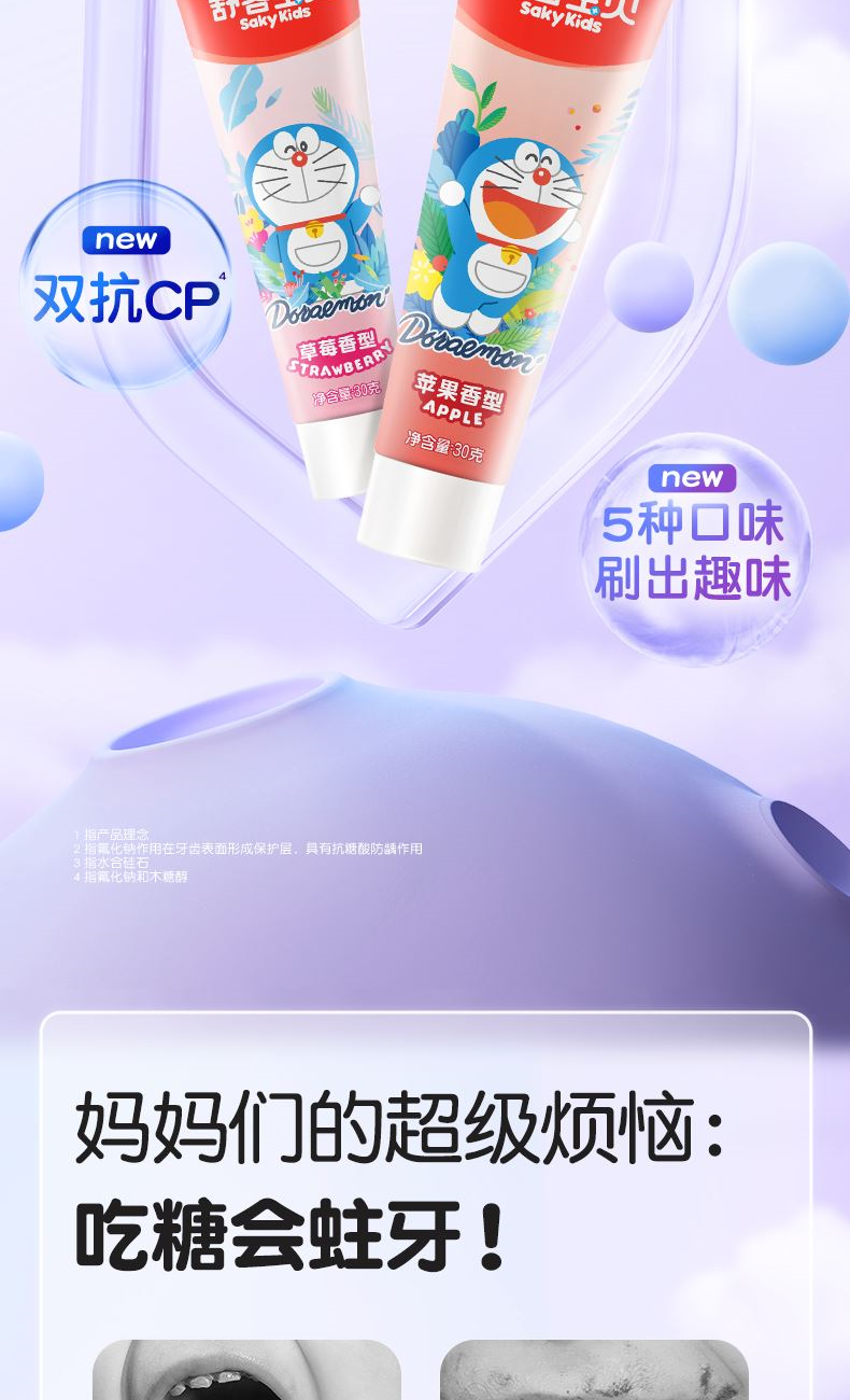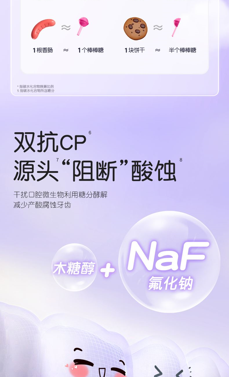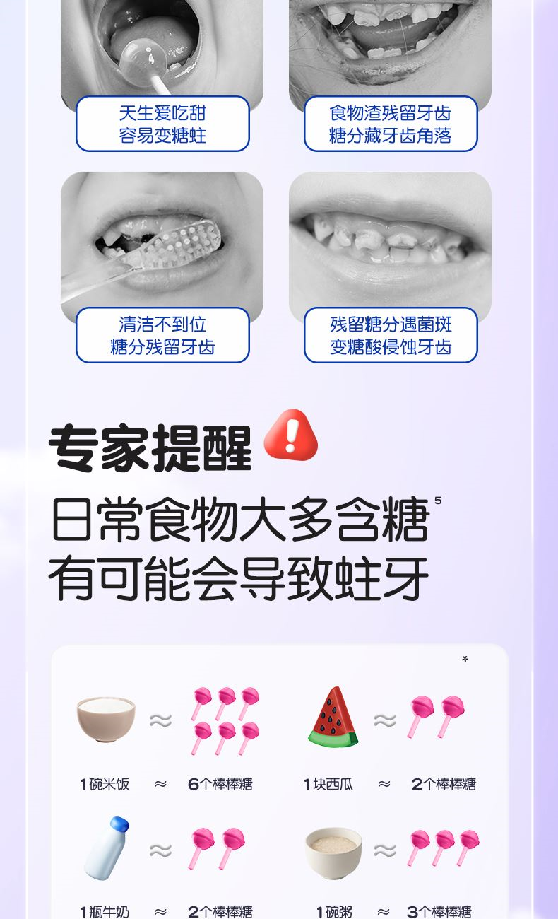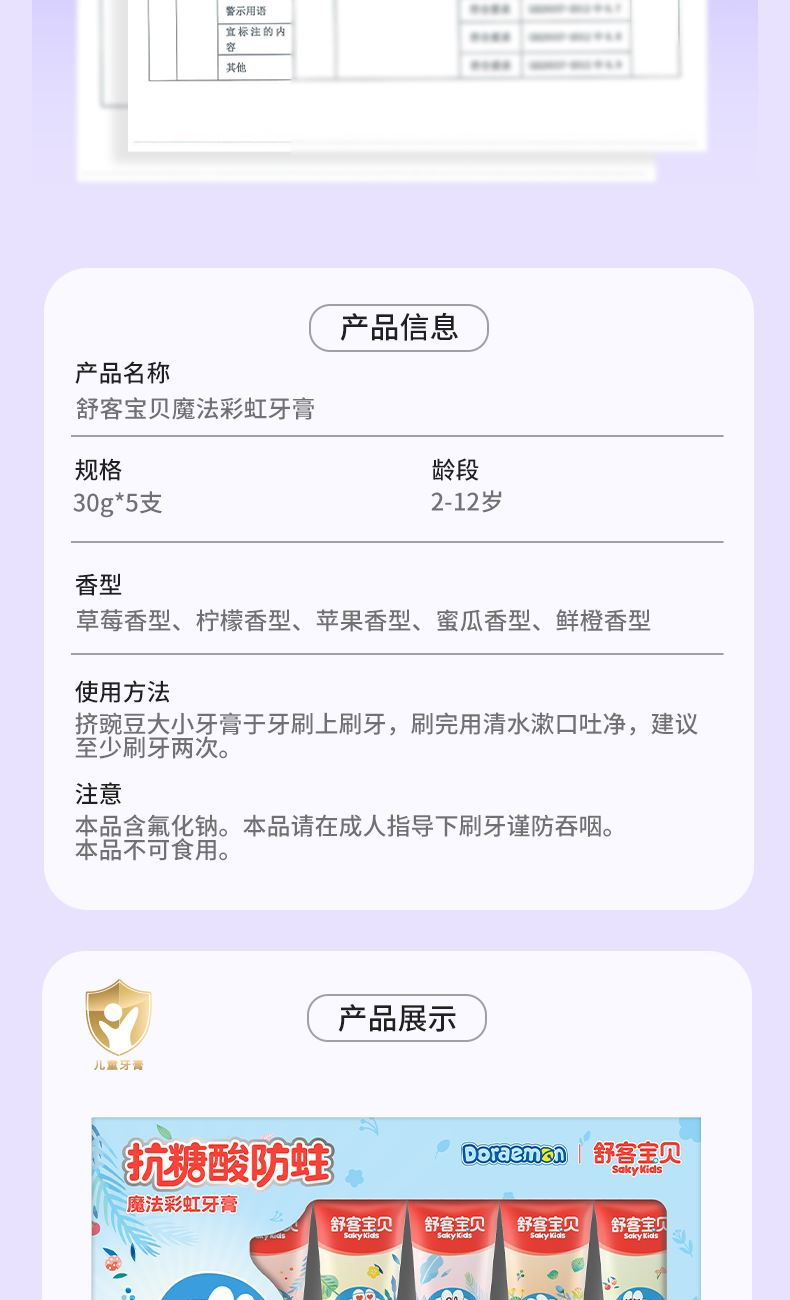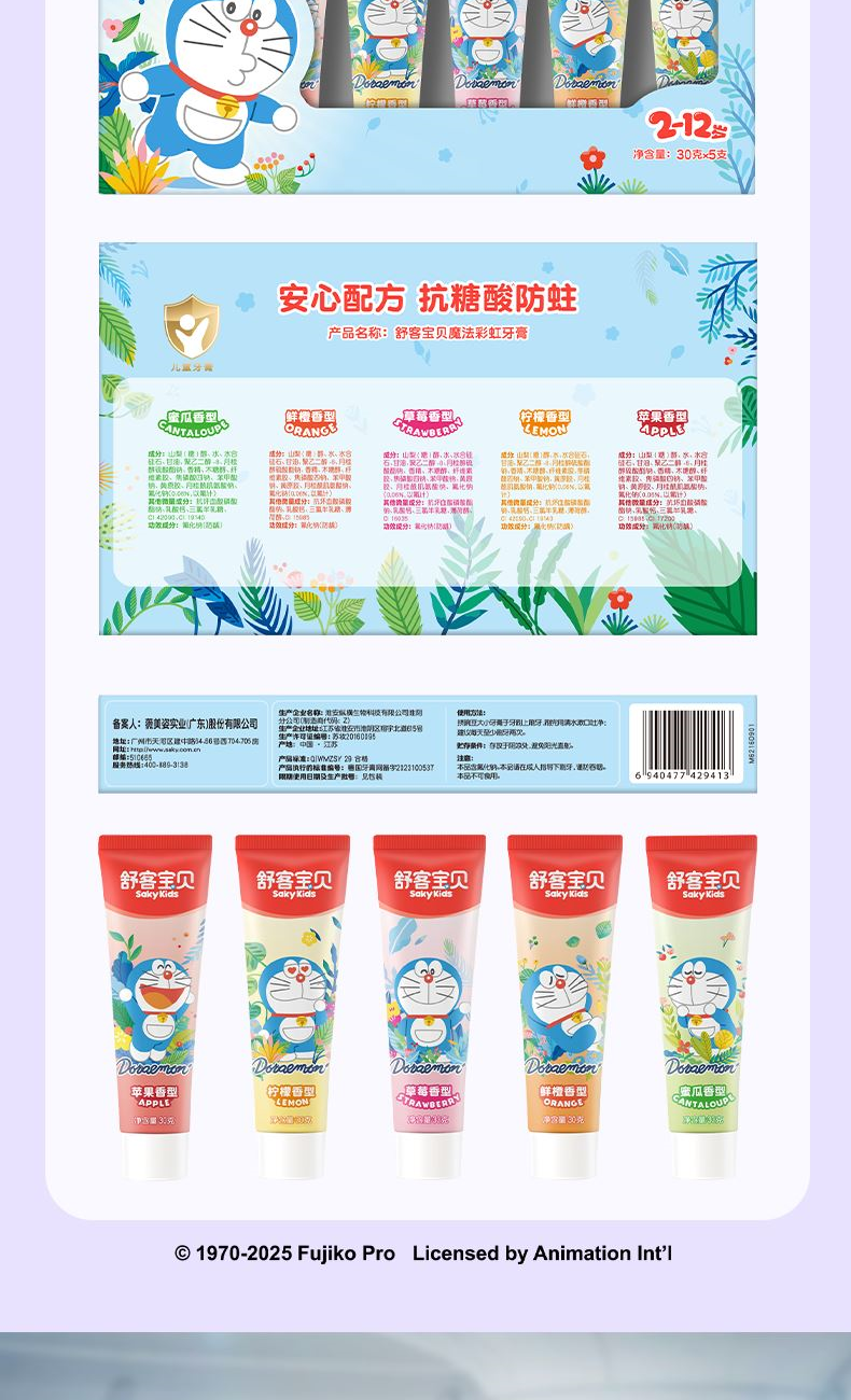 1、彩盒魔法礼盒,每天一款新口味,保持刷牙新鲜感; 2、 护理宝宝脆弱牙齿,呵护稚嫩牙龈。保护宝宝脆弱牙釉质,减少与牙齿摩擦损伤。 3、趣多水果味,成分安全。让宝贝爱上刷牙,帮助养成良好的刷牙习惯