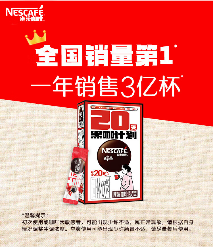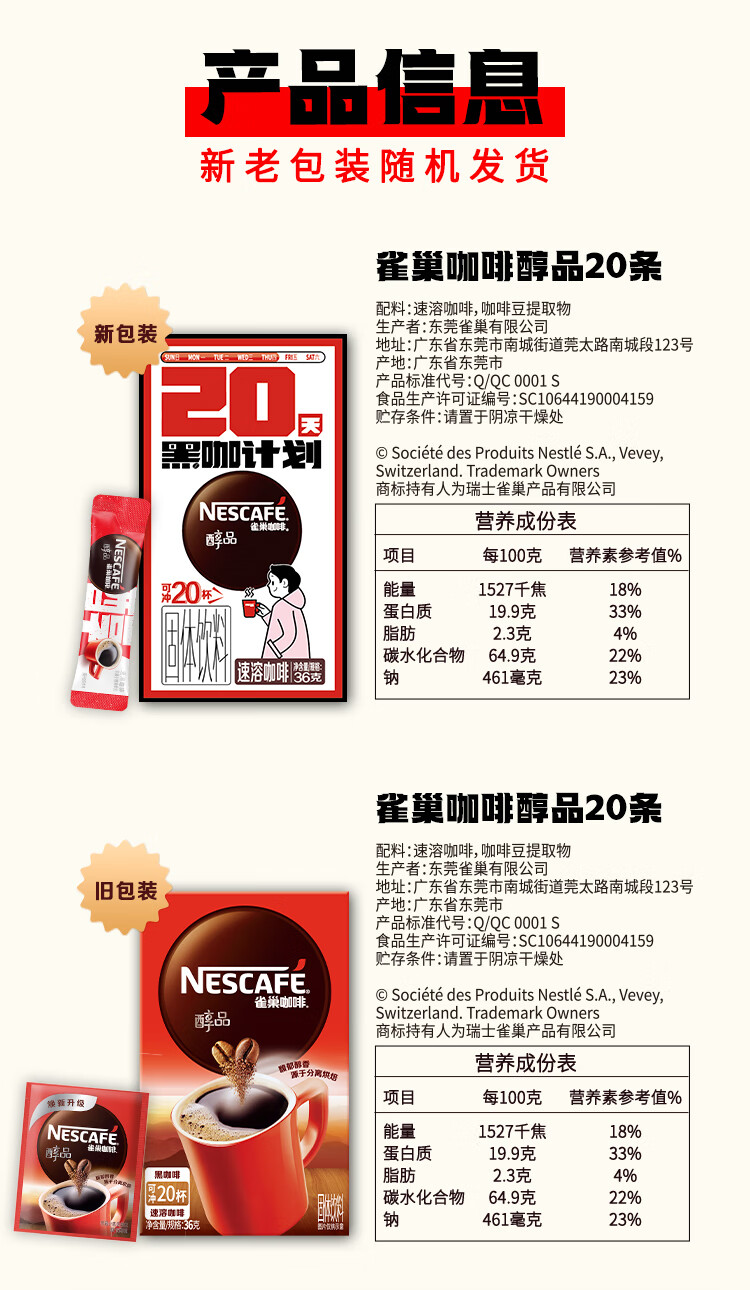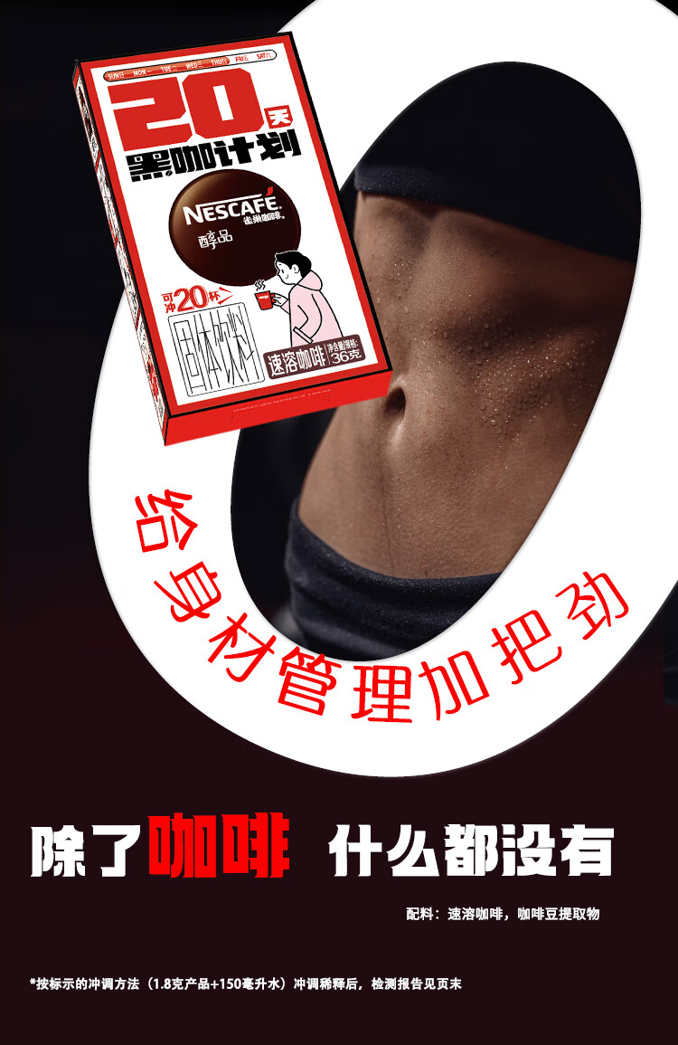 雀巢醇品速溶美式黑咖啡0糖0脂20条*1.8克盒装