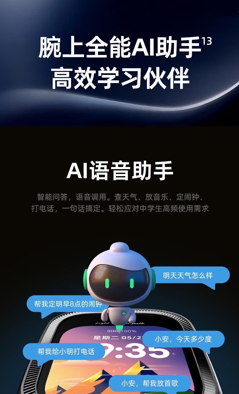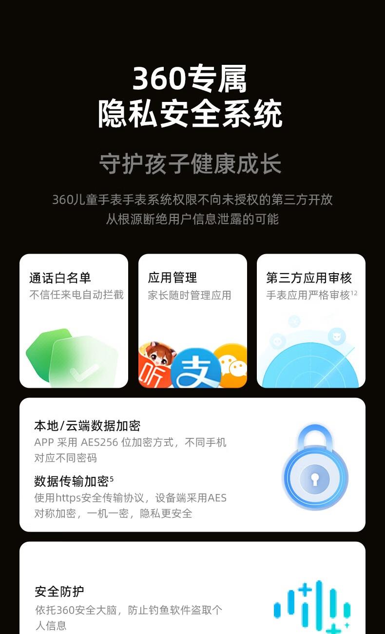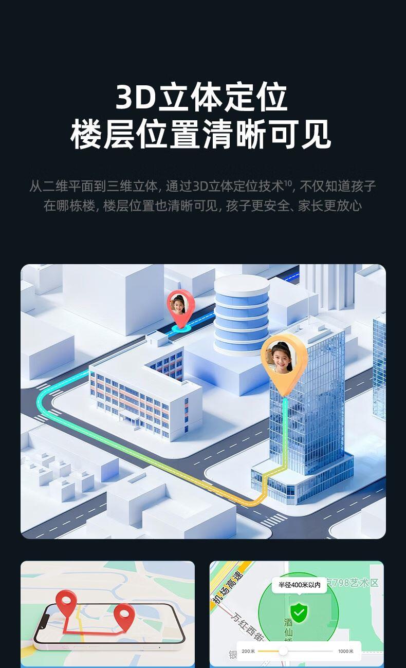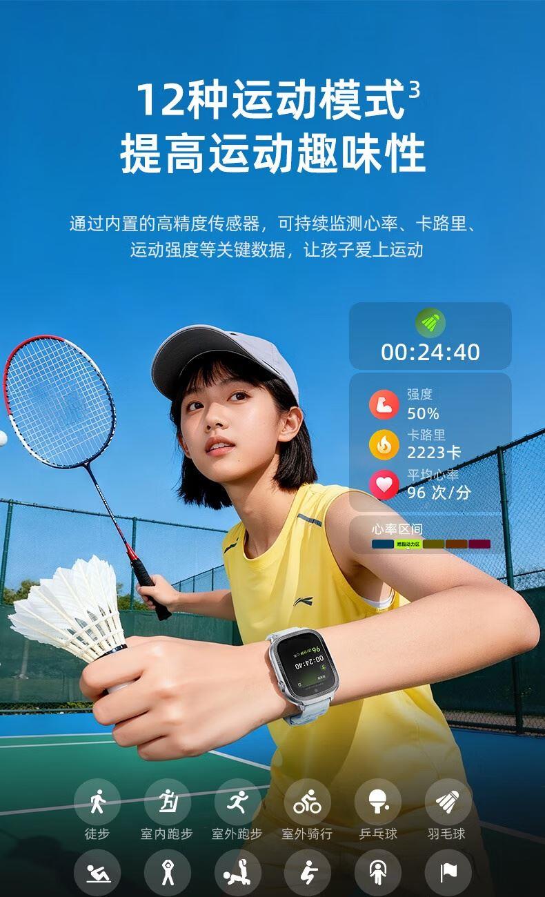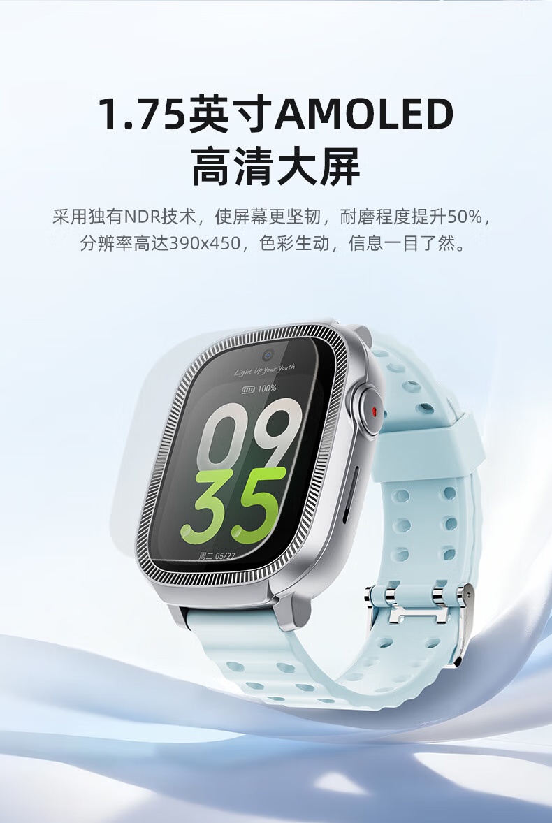 产品参数: 1、1.75英寸屏幕、500万前置像素,8G内存、4G全网通,IP68米级防水、800mAh大容量电池 产品功能: 1、创新突破AI技能,懂思考,会辅导,12种运动模式。 2、10重高精定位,孩子位置知晓 3、3D立体定位,楼层位置清晰可见 4、360专属隐私安全系统,健康体征全面检测。 5、IP68米级防水,洗手淋雨都不怕 6、支持三大运营商4G网络,通讯稳定更顺畅