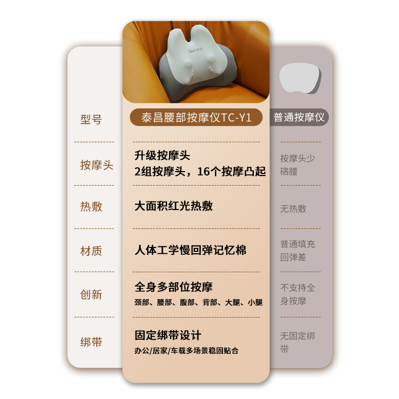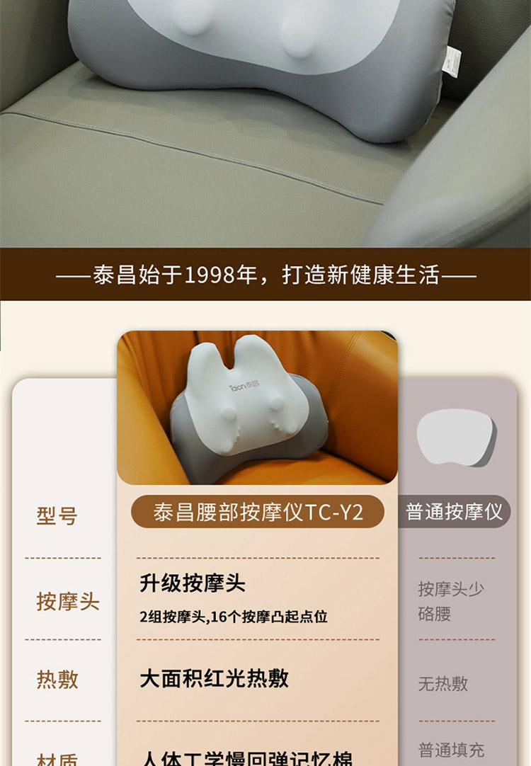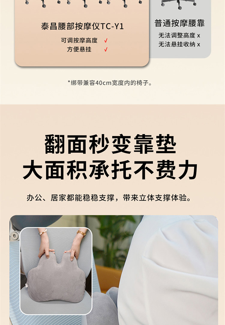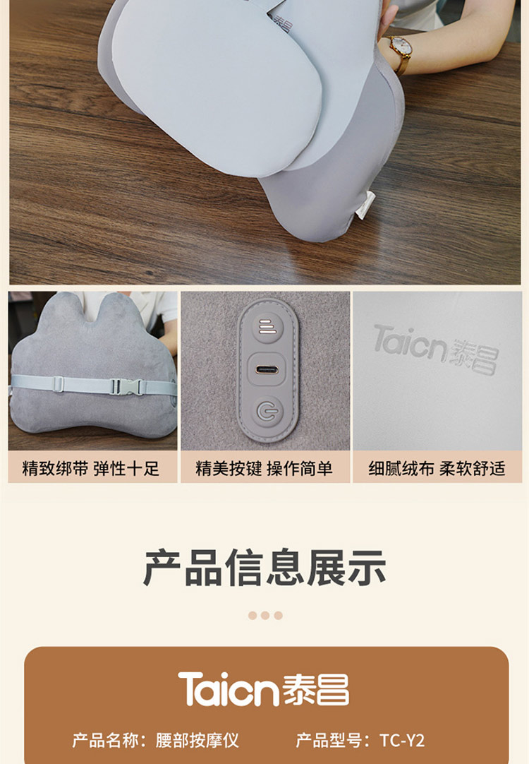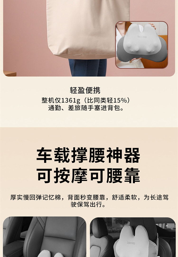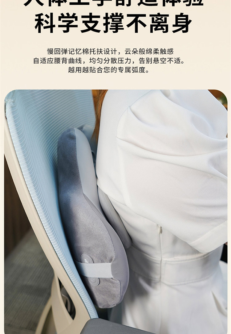颜色:灰色 按摩档位:3档 热敷温度:30℃ 定时时间:15min 续航时间:90-135min 充电时间:4小时 正反揉捏按摩 升级按摩头,2组按摩头,16个按摩凸起点位 大面积红光热敷 人体工学慢回弹记忆棉 全身多部位按摩,颈部、腰部、腹部、背部、大腿、小腿 固定绑带设计,办公/居家/车载多场景稳固贴合