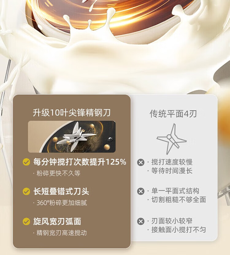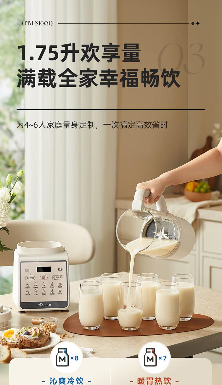 1、干豆直打免滤,丝滑营养好吸收 2、漩动萃取系统,激发豆浆醇香 3、多段营养精熬,丝滑香浓如牛奶 4、1.75升欢享量,满载全家幸福畅饮 5、智慧交互触按,高清大字一眼看懂
