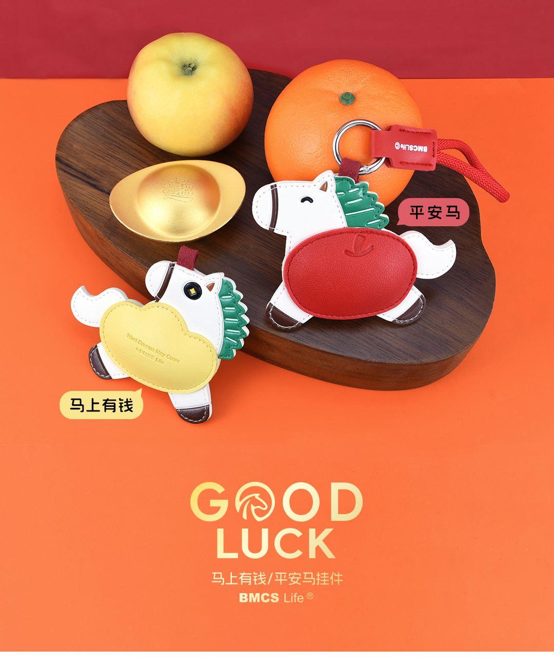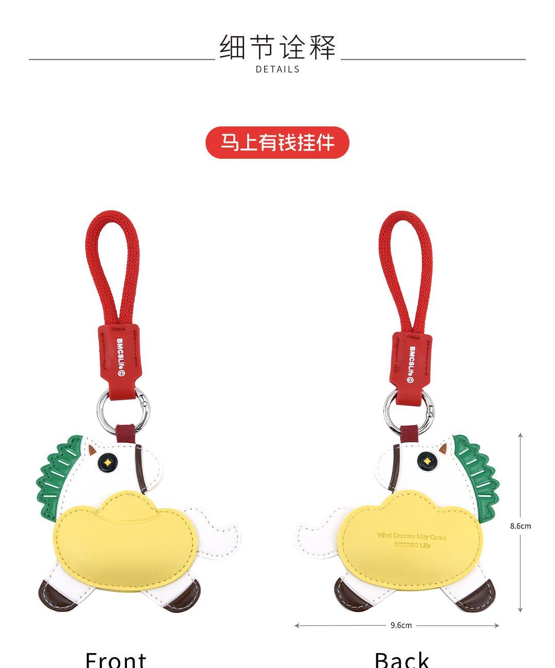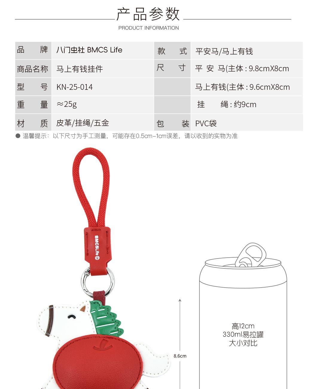 马上有钱(约9.6cmX8cm) 平安马(约9.6cmX8cm) 大小大概是一只掌心大小 产品可多功能使用 如做包挂挂件/钥匙扣/车挂件 选料选用PU皮材质,耐磨耐用不易变形 内里填棉线,柔软有弹性 做工上精致的缝合走线,牢固不脱线 挂件边缘皮革手工多边打磨,不毛糙,经久耐用