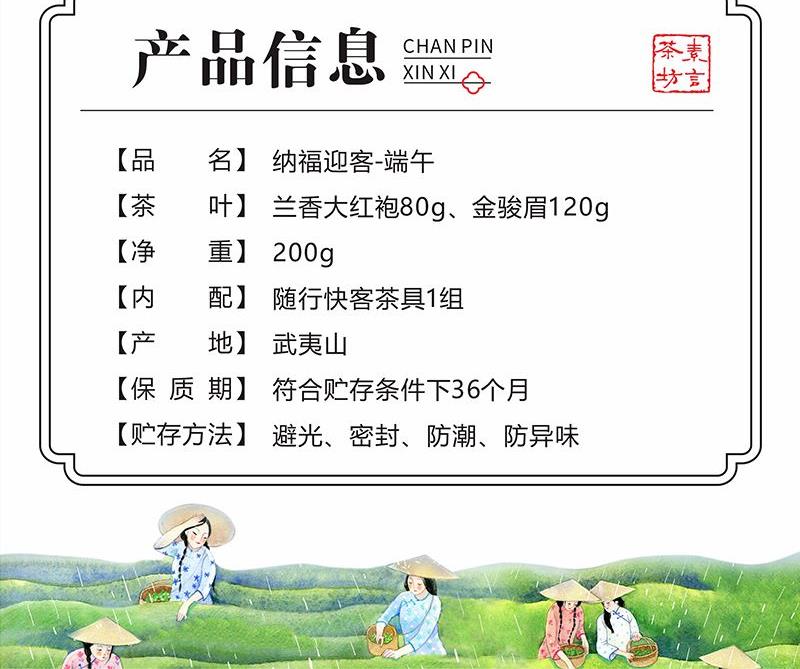 【原料】兰香大红袍80g、金骏眉120g 【净重】200克 【内配】随行快客茶具1组