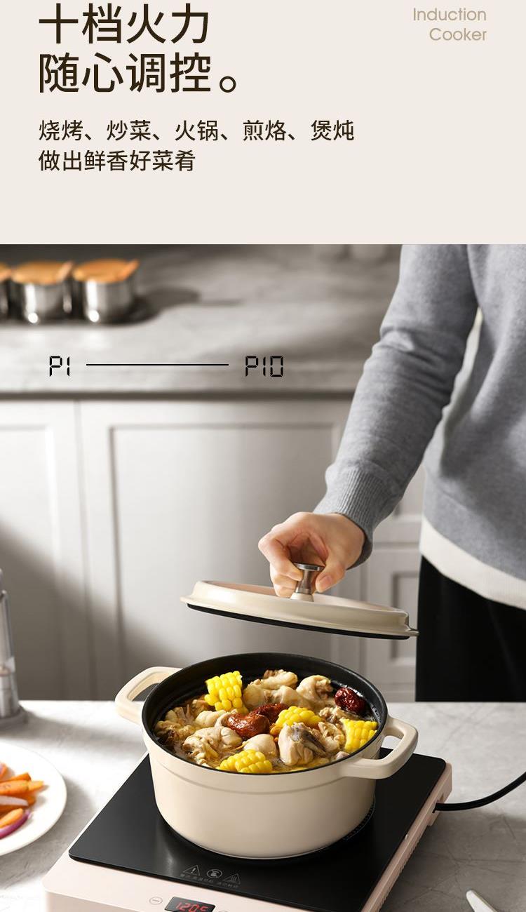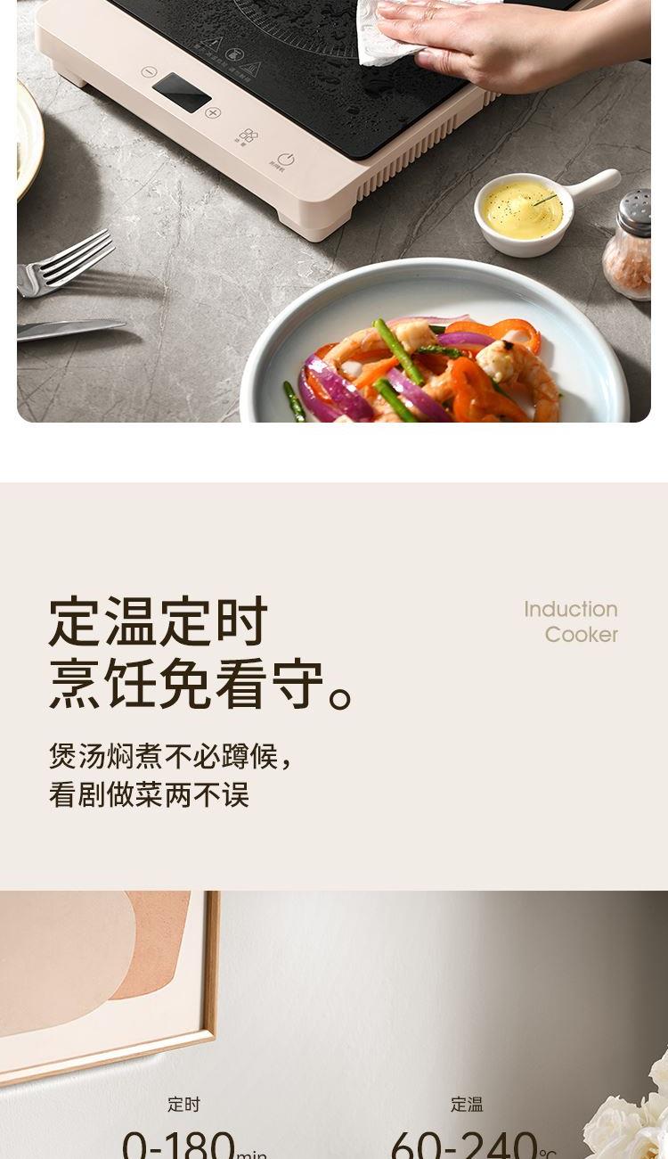 额定电压:220V ~ 额定频率:50Hz 额定功率:2100W 控制方式:微电脑程序控制 主要材质:PP+微晶板 产品尺寸:260x300x55mm 产品净重:1.75kg 产品条码:6952020905503 1、现代设计,简约而优雅,为厨房带来时尚美感; 2、2100W大功率:提供10档火力调节,满足不同烹饪需求; 3、智能定温功能,从60℃到240℃,按需求控制烹饪温度; 4、180分钟定时,无需时刻看管,烹饪更加轻松自在; 5、过热保护和自动关机设置,确保使用安全。