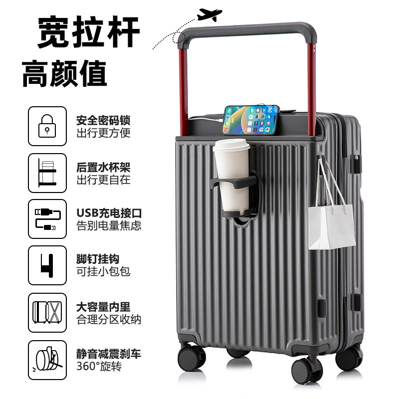 升级合金宽拉杆,受力均匀省力又稳固,后置拉杆更省空间,箱内空间使用率更高;前置开盖分区收纳出行小物更方便,后置可折叠便携杯架,咖啡、水杯、雨伞都可放这,更多隐藏功能期待你的解锁,轻音万向轮,采用高弹性TPE轮皮,畅滑省力,多路面行走不卡顿、不费劲,旅途优雅不打扰;嵌入式密码锁,安全出行有保障,大容量双封闭内衬,分区收纳更合理,轻松出行无负担~ 新疆/西藏/内蒙不发,四川凉山彝族、攀枝花市、甘孜藏族、阿坝藏族羌族运费实际收,无7天无理由退货
