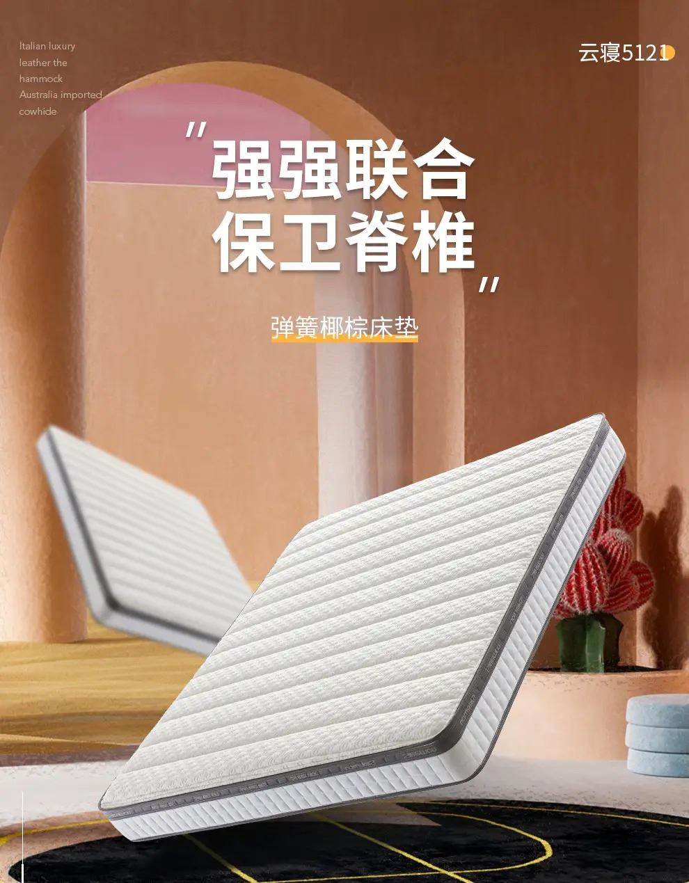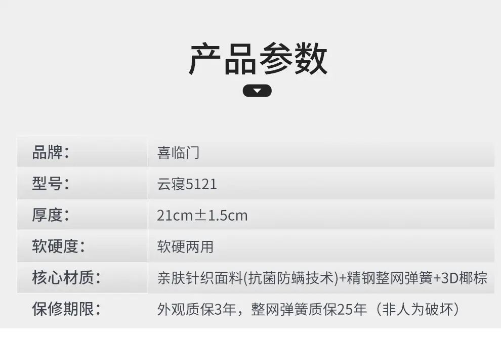 • 喜临门云寝3D椰棕竹炭海绵强效护脊床垫(150*200cm)