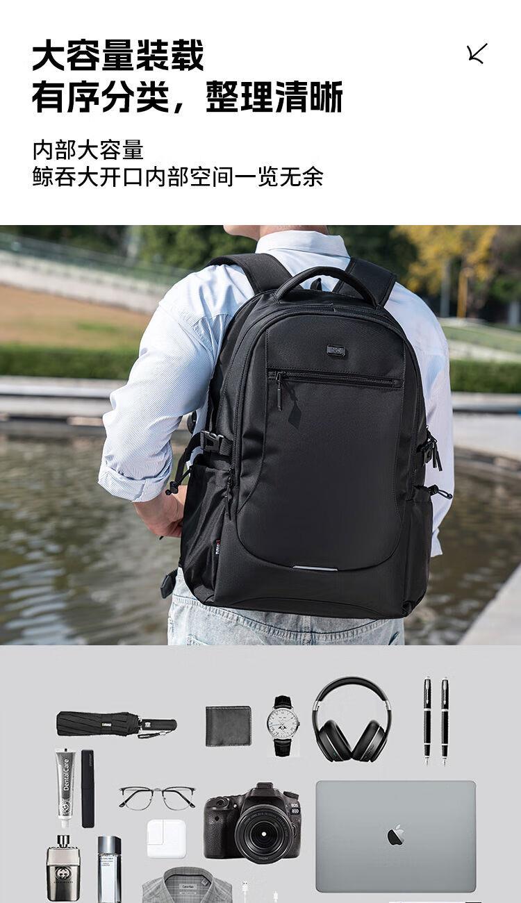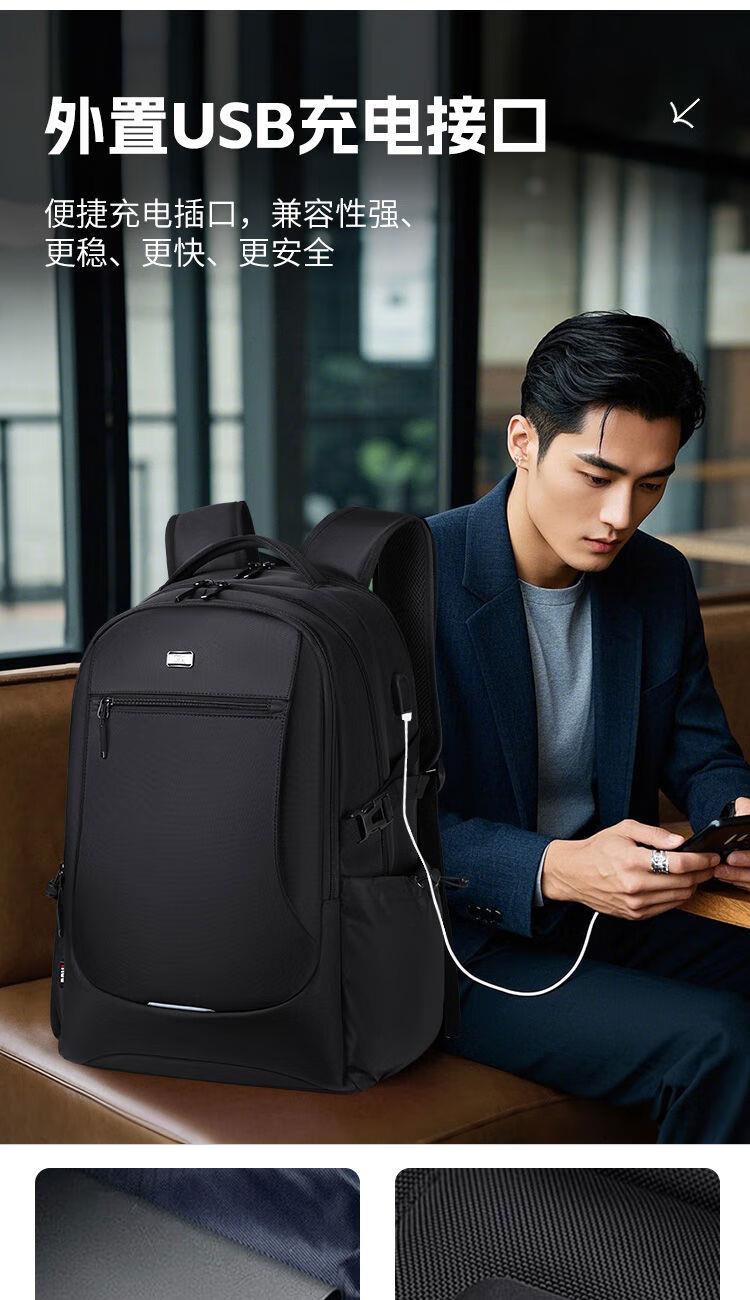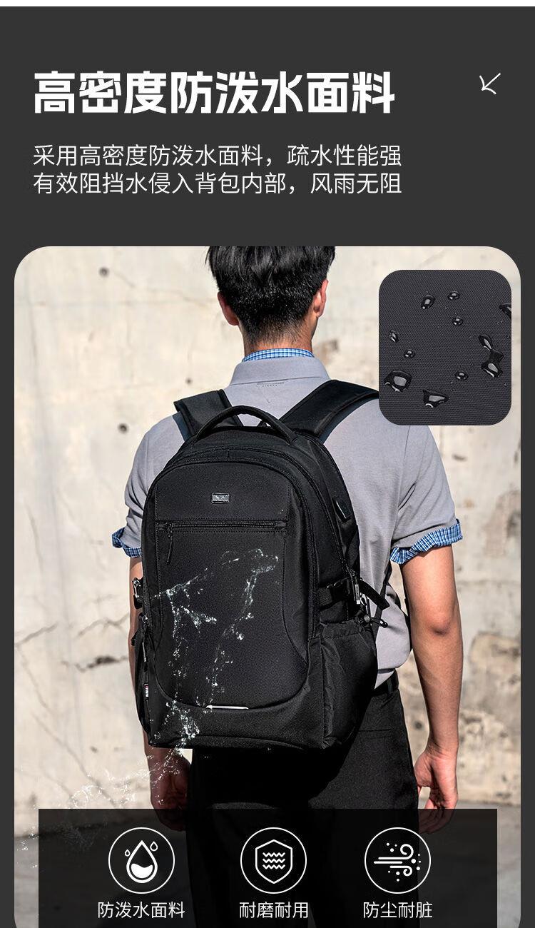 类别:背包 外部材质:织物 闭合方式:拉链 规格:300x180x440mm 容纳电脑尺寸:15.6英寸 风格:通勤风 商务风 携包出行,旅途无忧,立体挺括包型兼顾时尚外观与功能性,轻松驾驭多种都市出行场景 内里大容装载,多层收纳空间,满足多样收纳需求,轻装出行,采用高密度织物面料,防刮耐用,防泼贱,轻松应对泼水,外置USB充电接口,3D透气蜂窝设计,柔软减压肩带