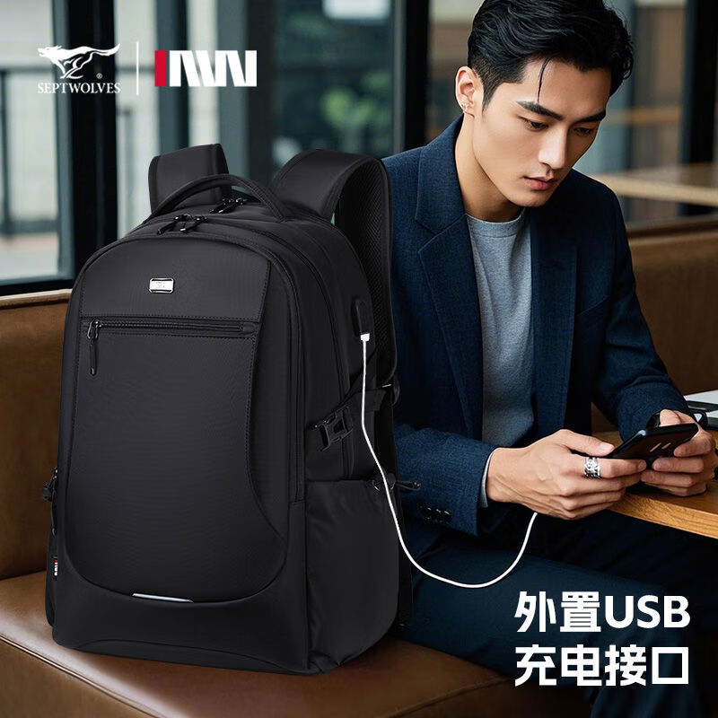 七匹狼男士双肩包商务出差旅行电脑包CD141637-1