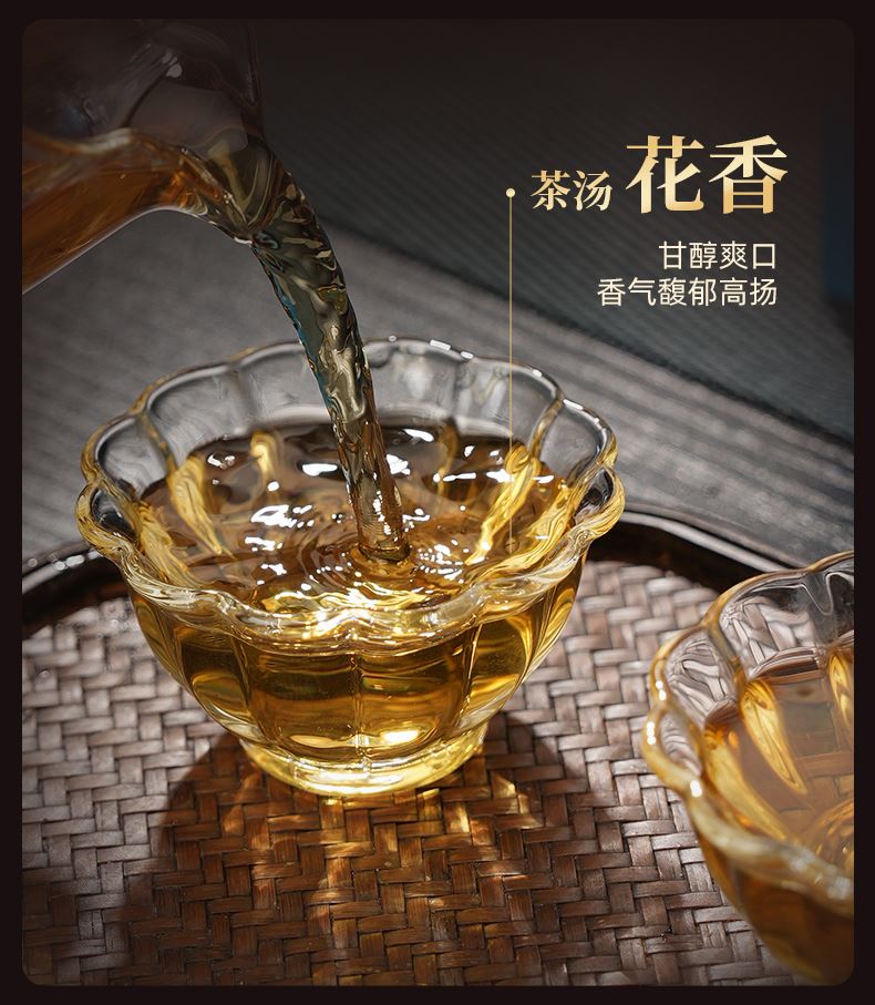 【品质特征】茶干褐润 条索匀整 紧结粗壮 茶汤花香 甘醇爽口 香气馥郁高扬 叶底鲜活 明亮柔软 肥厚自然。