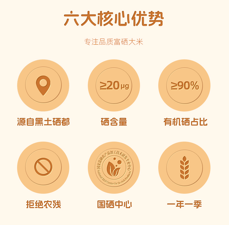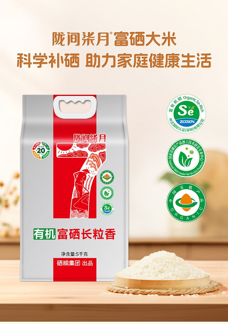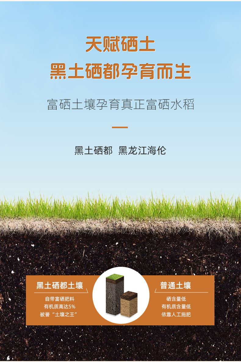 产品特点1、源自黑土硒都·黑龙江海伦,东北优质产区种植,富硒黑土孕育。2、专业机构认证,严格遵循有机标准,有机种植,从水稻种植,加工过程, 有机标识、流通去向每道工序都有记录。3、甄选稻种,黑土孕育,粒形修长,光泽透亮,口感软糯香甜。 国硒中心认证有机硒,90%有机硒,每100g平均硒含量≥20μg。
