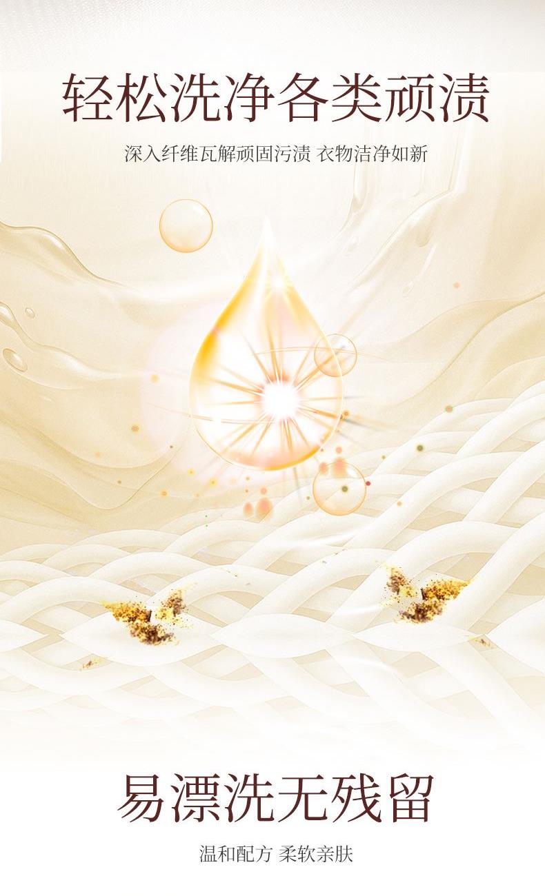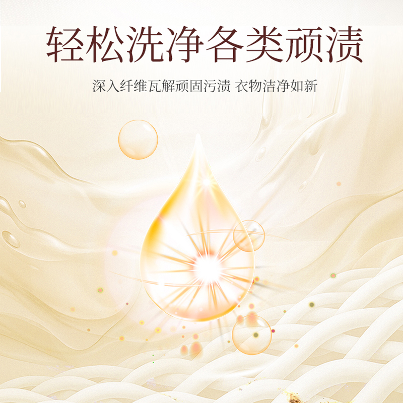 1、深入衣物纤维,瓦解衣物上的顽固污渍,令衣物洁净如新。 2、结合香氛祛味因子,祛除汗味、霉味等难闻异味,洗后衣物散发淡淡清香。