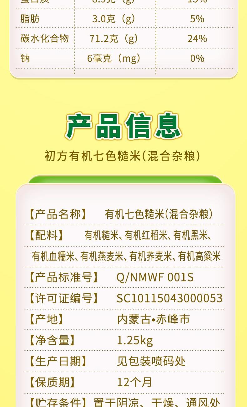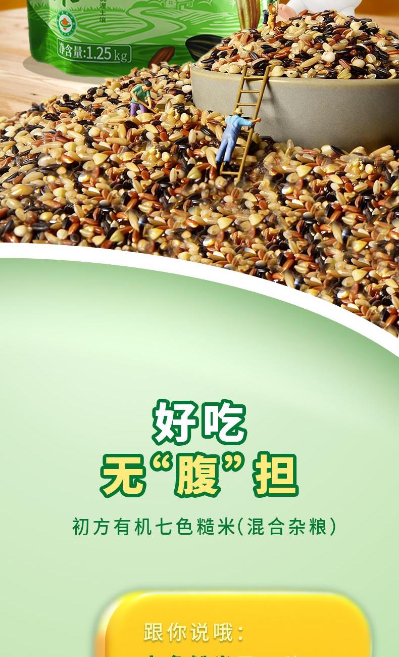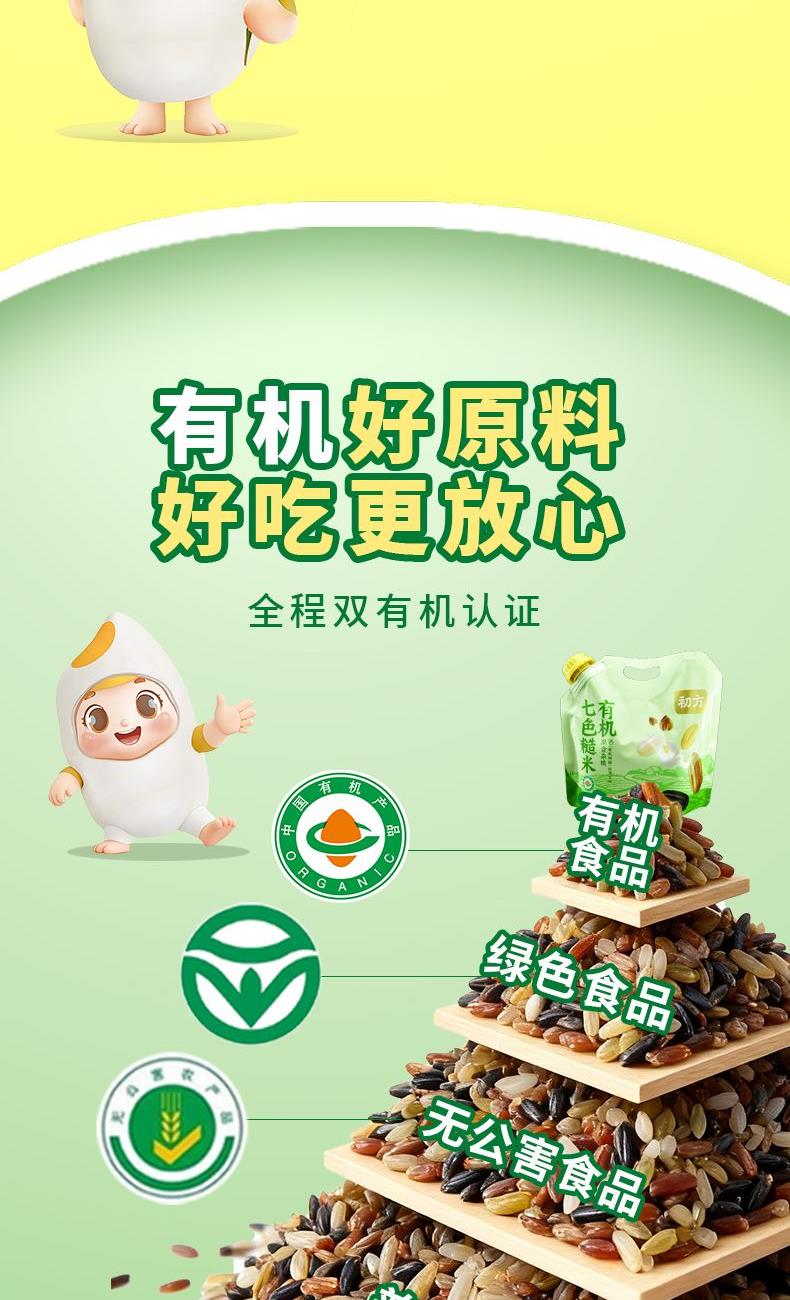 ✅有机认证 全程有机种植,无农药、无化肥、无添加。 ✅ 科学配比 7种有机粮食搭配,营养与口感兼顾。 ✅轻食优选 饱腹感强,好吃无“腹”担! ✅ 口感优良 软糯香甜,谷香浓郁,冷却后依然Q弹。