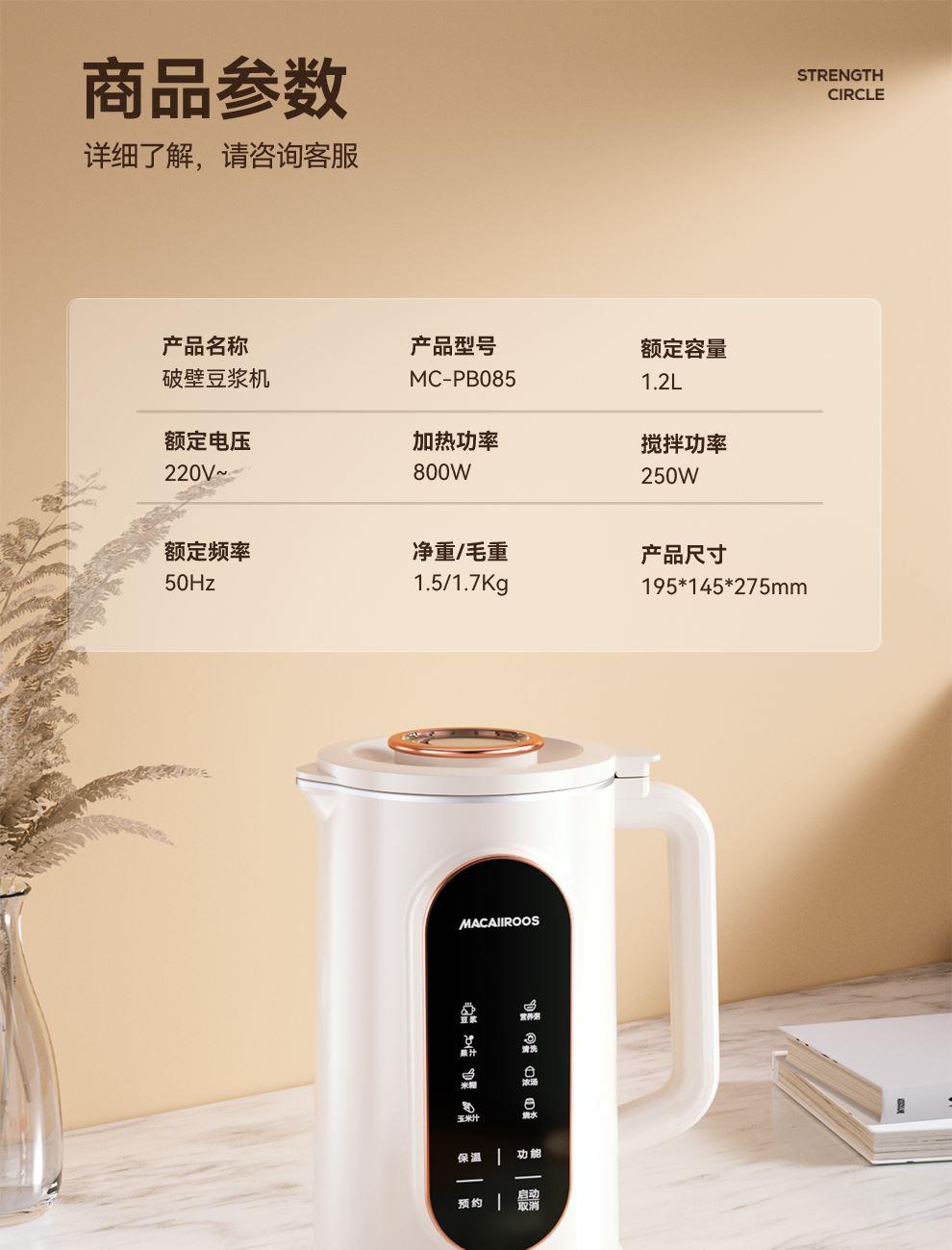 • 美国迈卡罗破壁豆浆机MC-PB085
