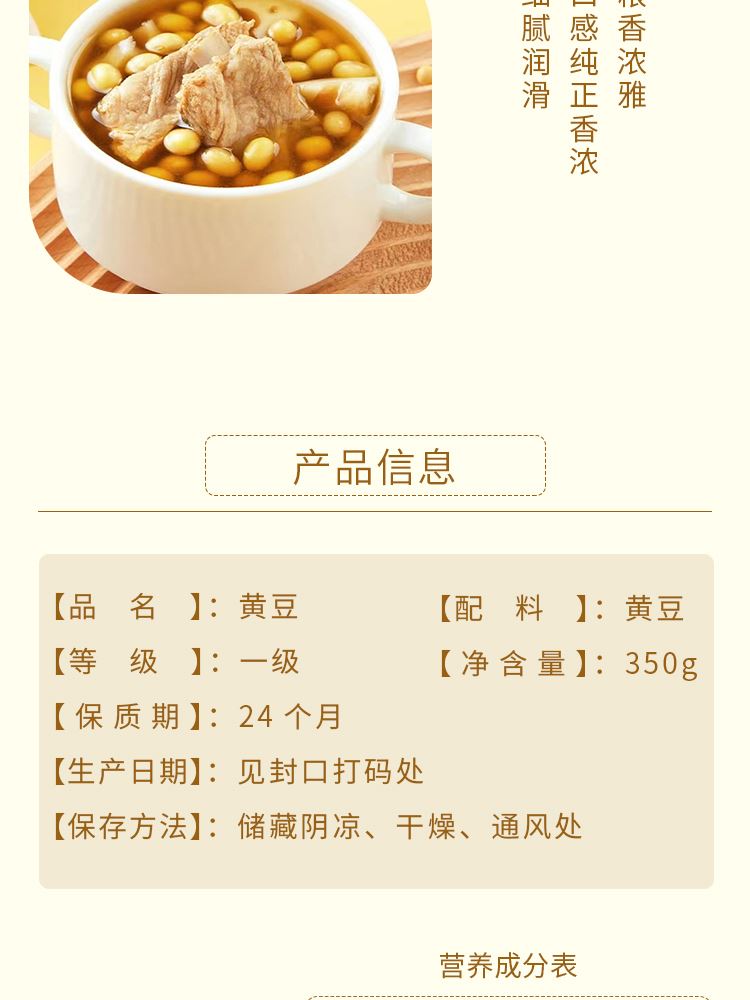 注:该产品二盒起发! 配料:黄豆 净含量:350g 等级:一级 保质期:24个月