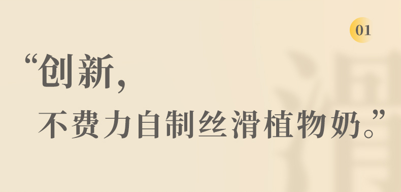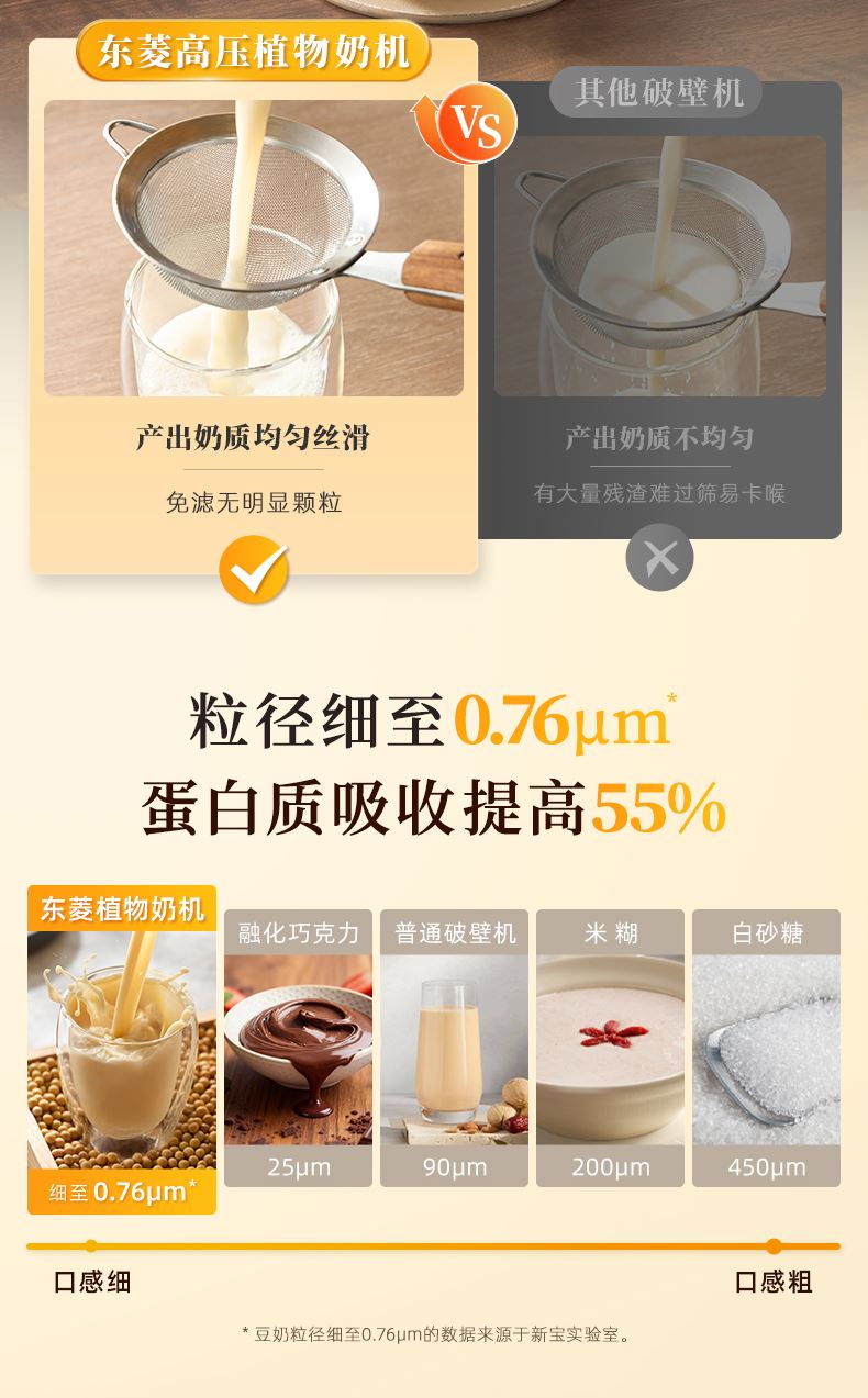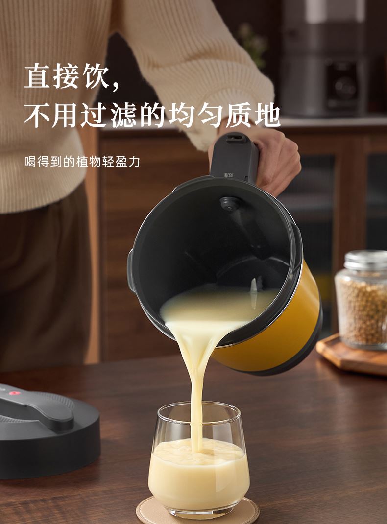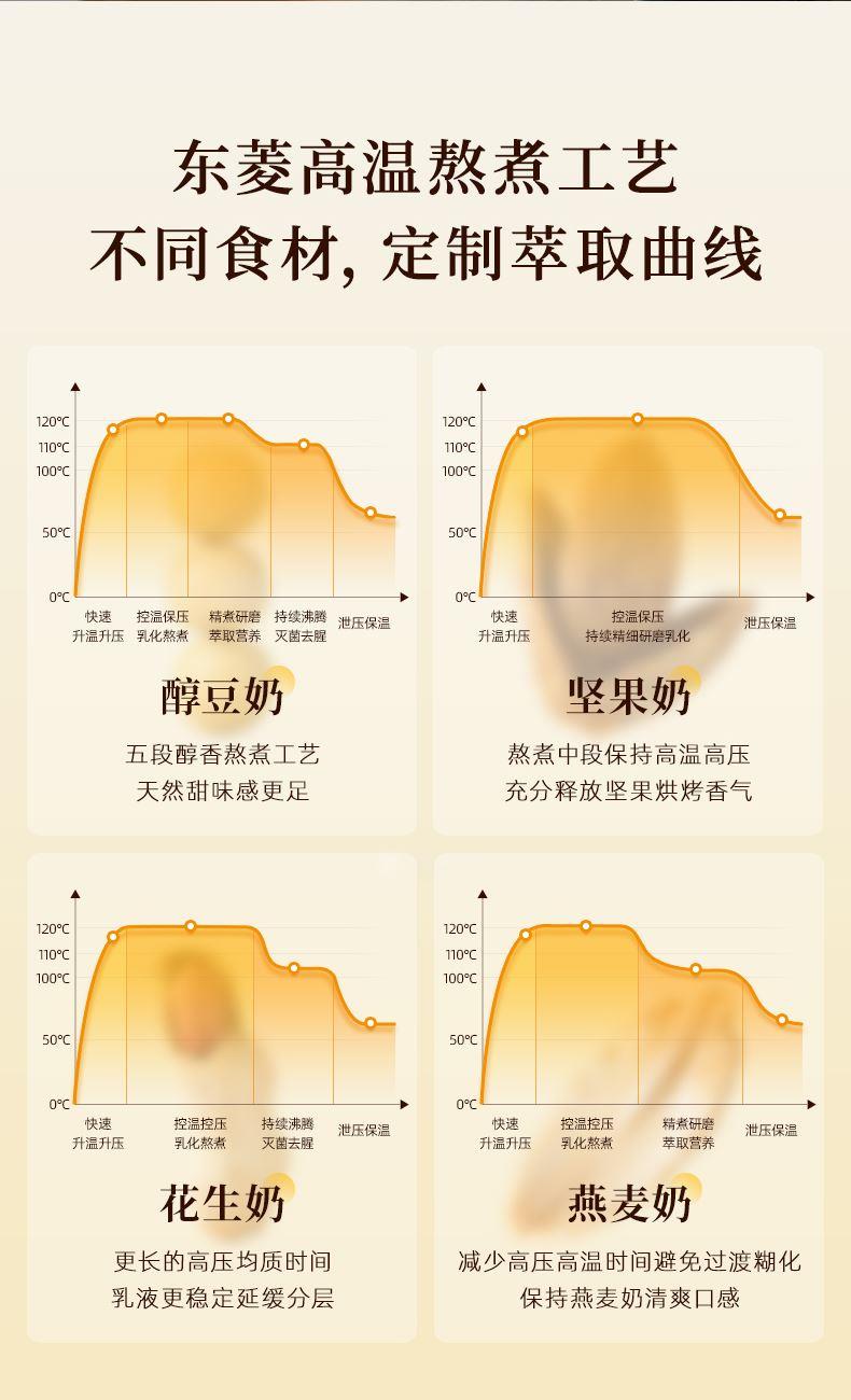 1.智能高压乳化技术,120kPa乳化成奶,大豆粒径低至0.76μm,细腻无渣感 2.特设两档研磨度,多段调温熬煮,释放原料天然甜味 3.12小时预约保温,高温烘洗,热烘 4.预设10大菜单,养生食补一周不重样,醇豆奶 坚果奶 花生奶 燕麦奶 玉米汁 五谷浆 快浆 果蔬汁 奶昔 营养粥