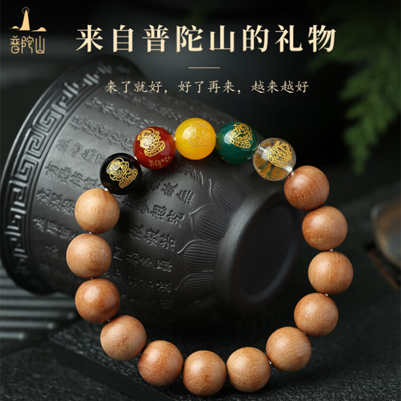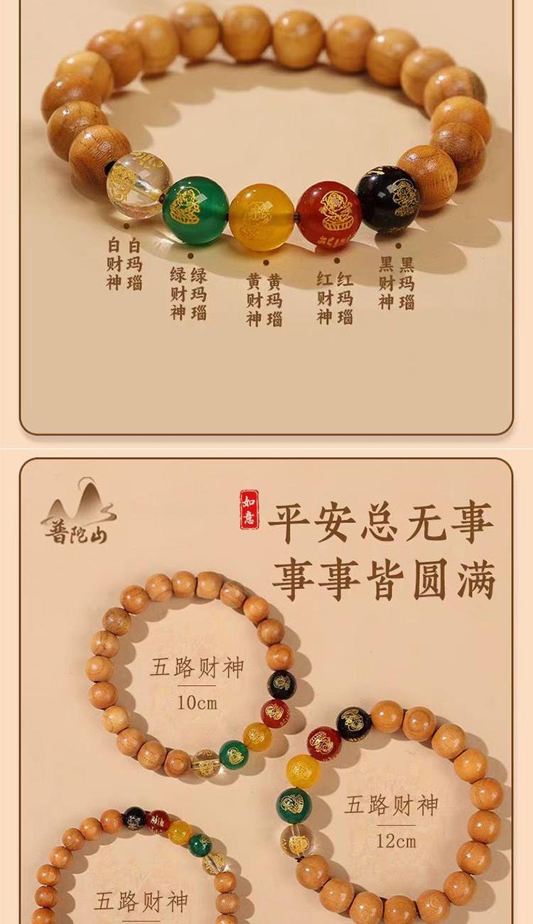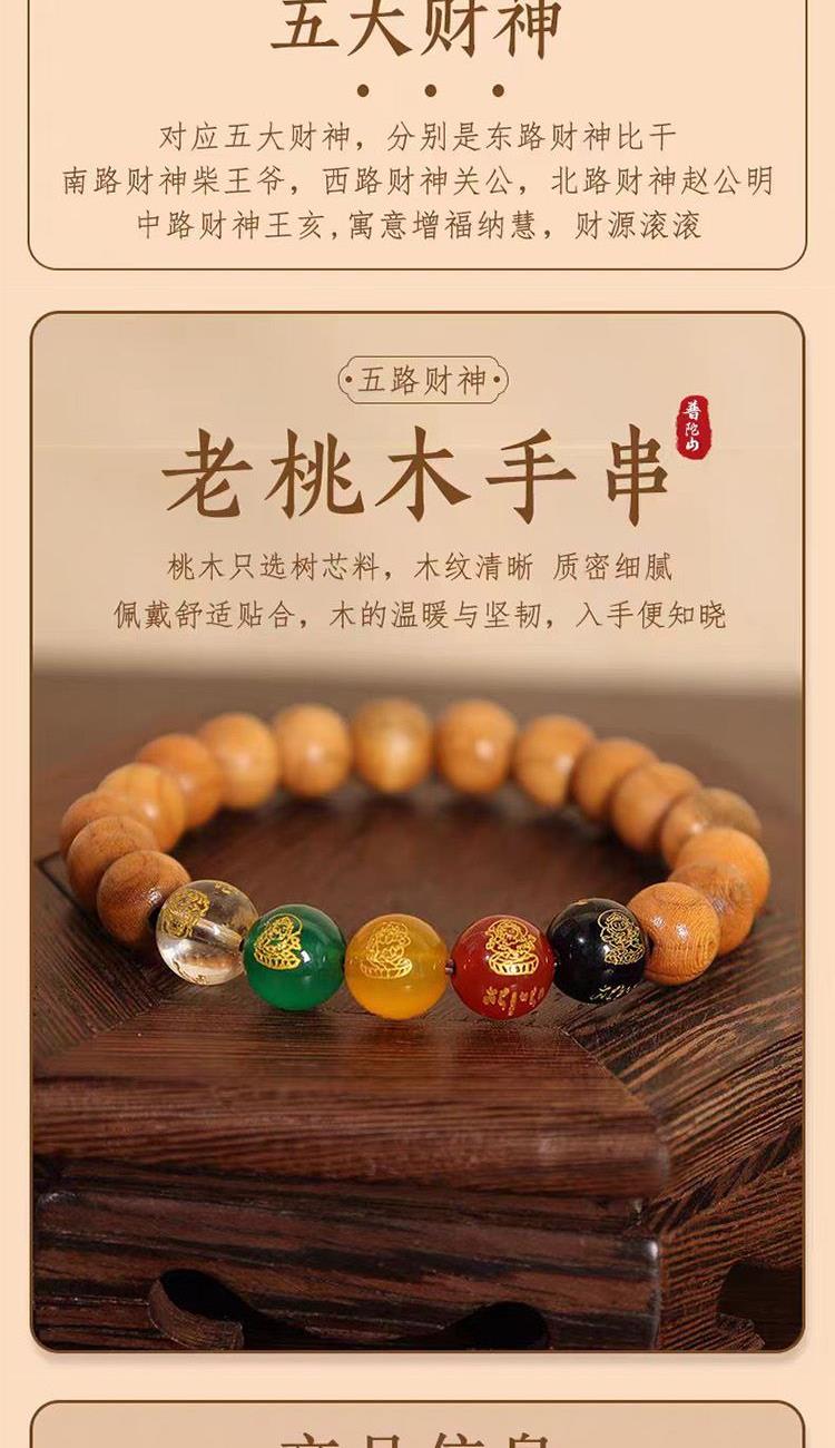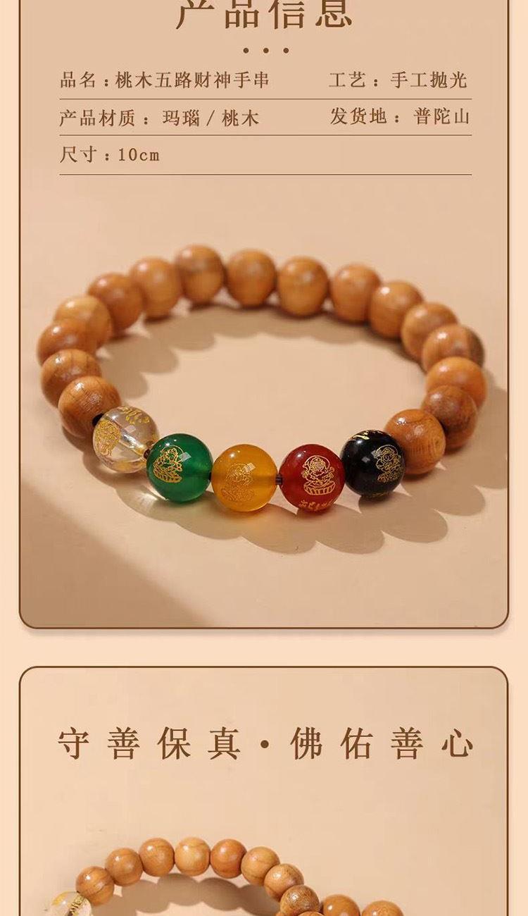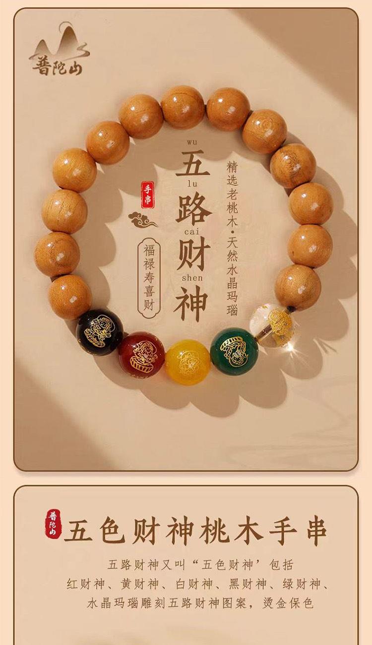 普陀山【五路财神】桃木手串10mm