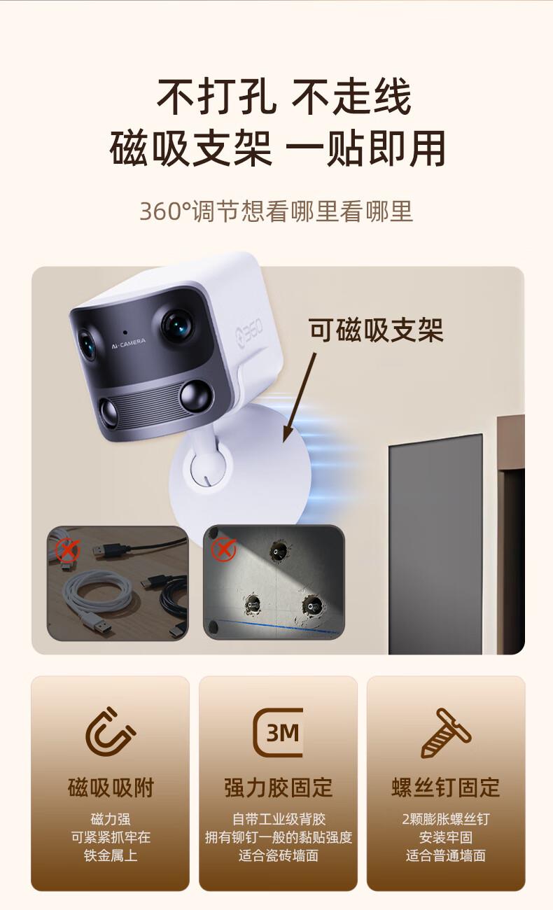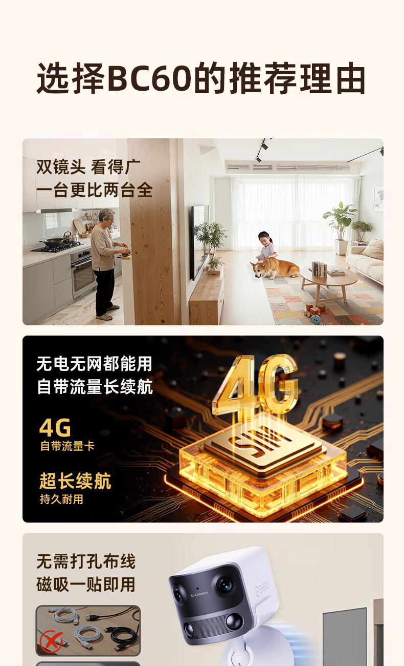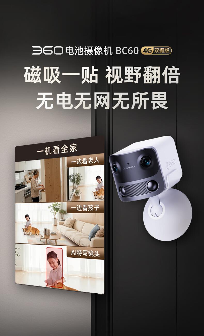 • 360摄像头BC604G双摄双300W终身4G流量免打孔